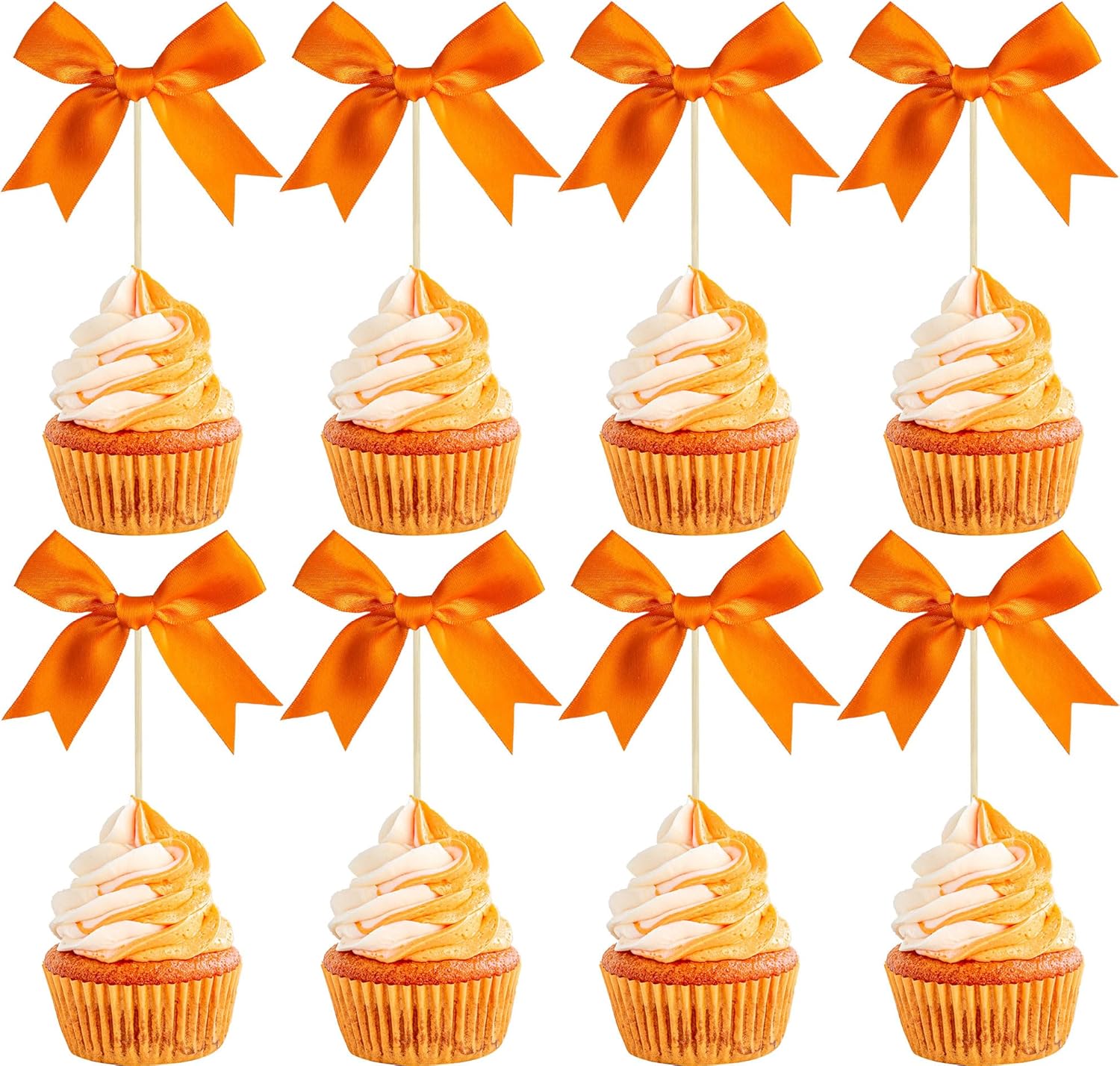 Gyufise 24Pcs Bow Cupcake Toppers Coquette Bow Girls Birthday Cake Decorations Bowknot Cake Toppers Bowknot Cupcake Picks for Baby Shower Birthday Wedding Bridal Engagement Party Supplies Orange