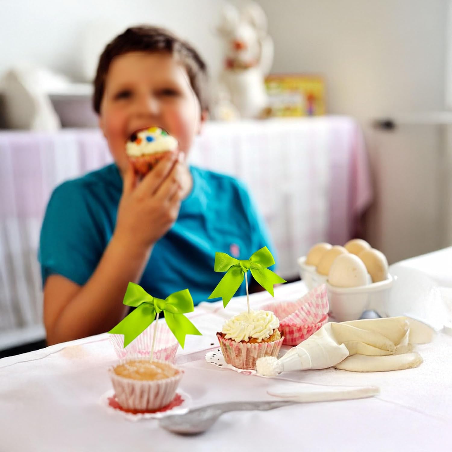Gyufise 24Pcs Bow Cupcake Toppers Coquette Bow Girls Birthday Cake Decorations Bowknot Cake Toppers Bowknot Cupcake Picks for Baby Shower Birthday Wedding Bridal Engagement Party Supplies Green