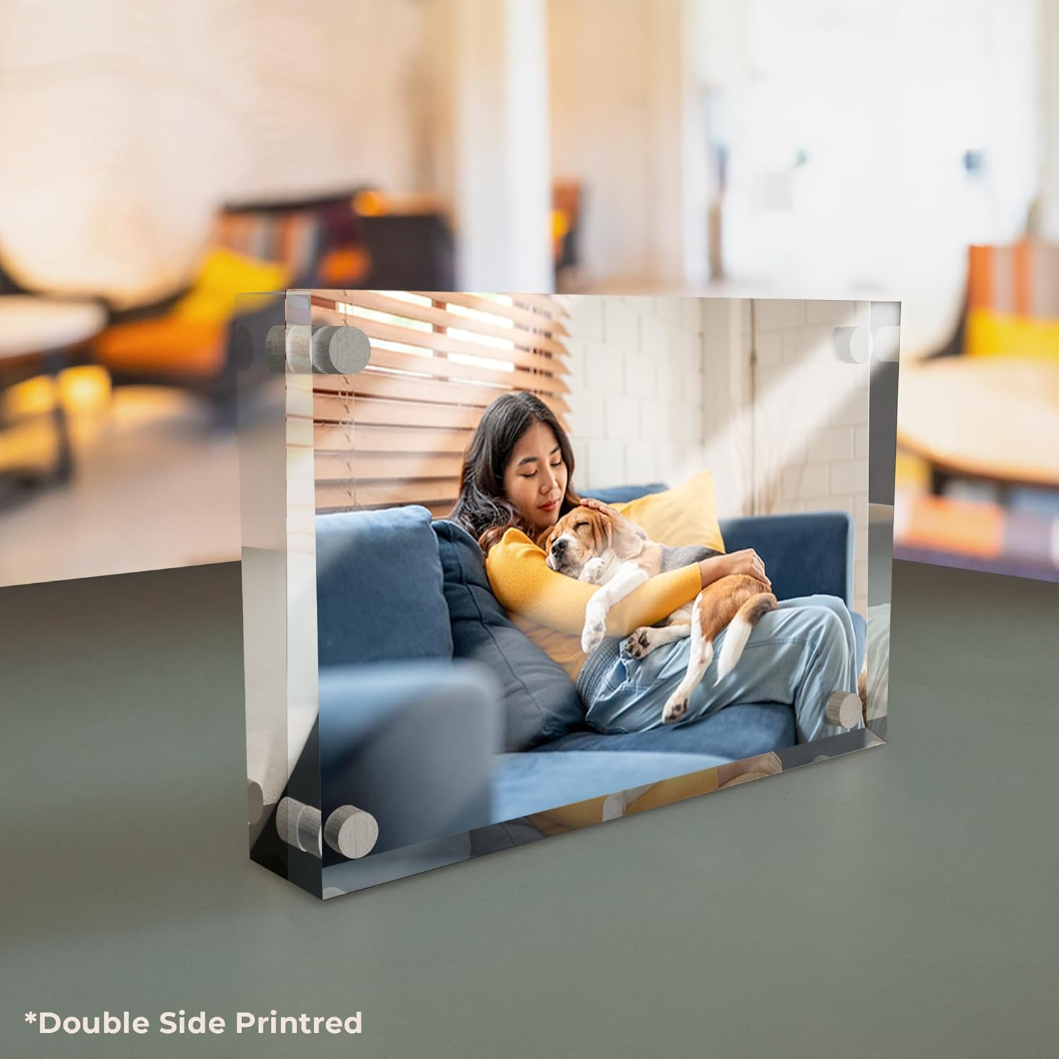 EGD Custom Double Sided Acrylic Photo Display | Romantic Photo Display for Couples, Family, Friends | 6x4 Clear Acrylic with Magnetic Corners | Personalized Double-Sided Printed for Office or Home Decor