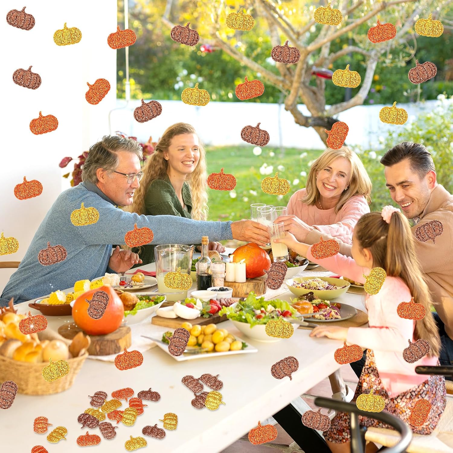 • Charming Seasonal Design: Each Thanksgiving Confetti features a classic pumpkin design, with a glitter finish, showcasing the warmth of fall. The rich color combination complements tablescapes, cards, and gifts effortlessly