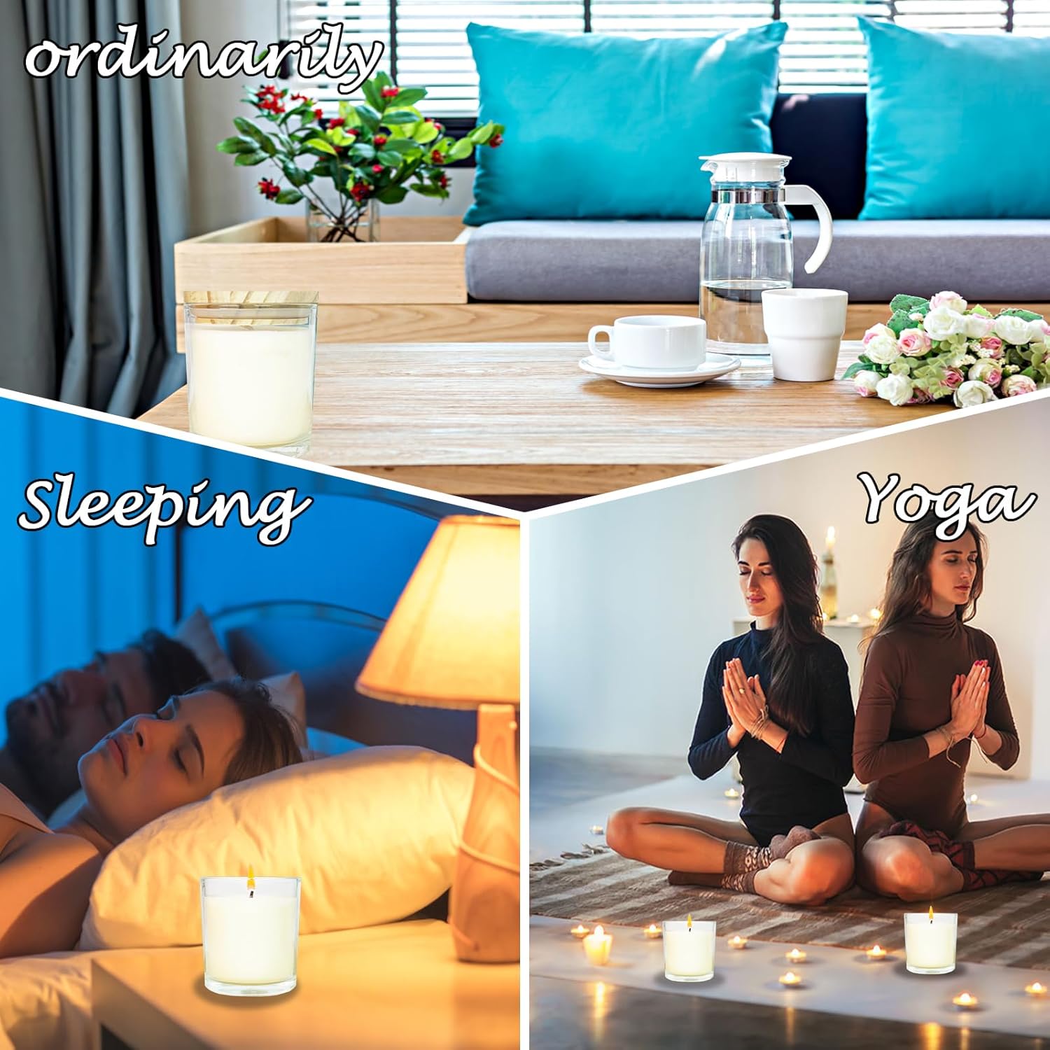 • πŸͺ”πŸͺ”LONG BURNING TIME: Our soy candles are made of high quality glass and burn-resistant candles, each one can last up to 24 hours and give off a light vanilla scent, which makes it long lasting to create an elegant atmosphere for you