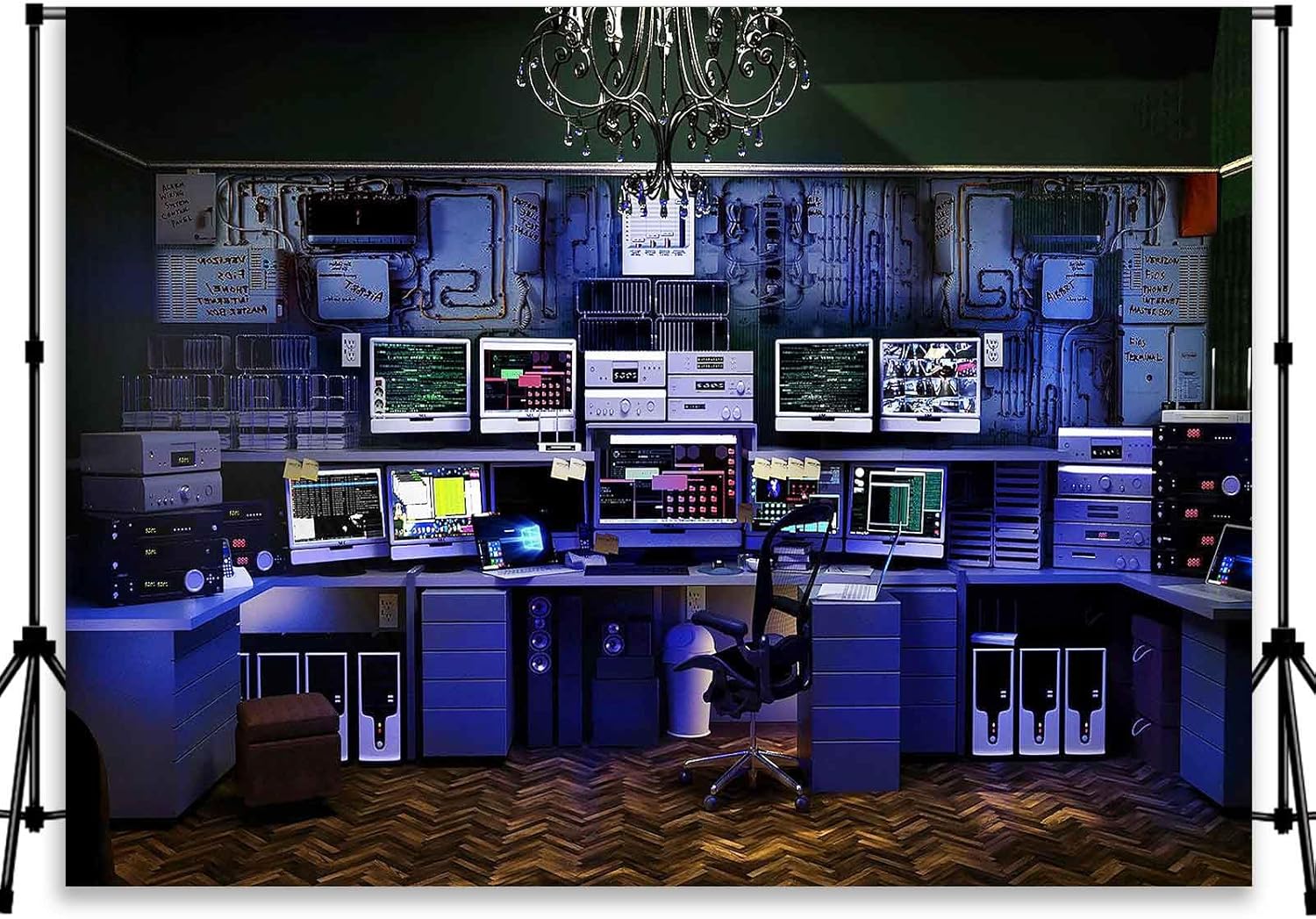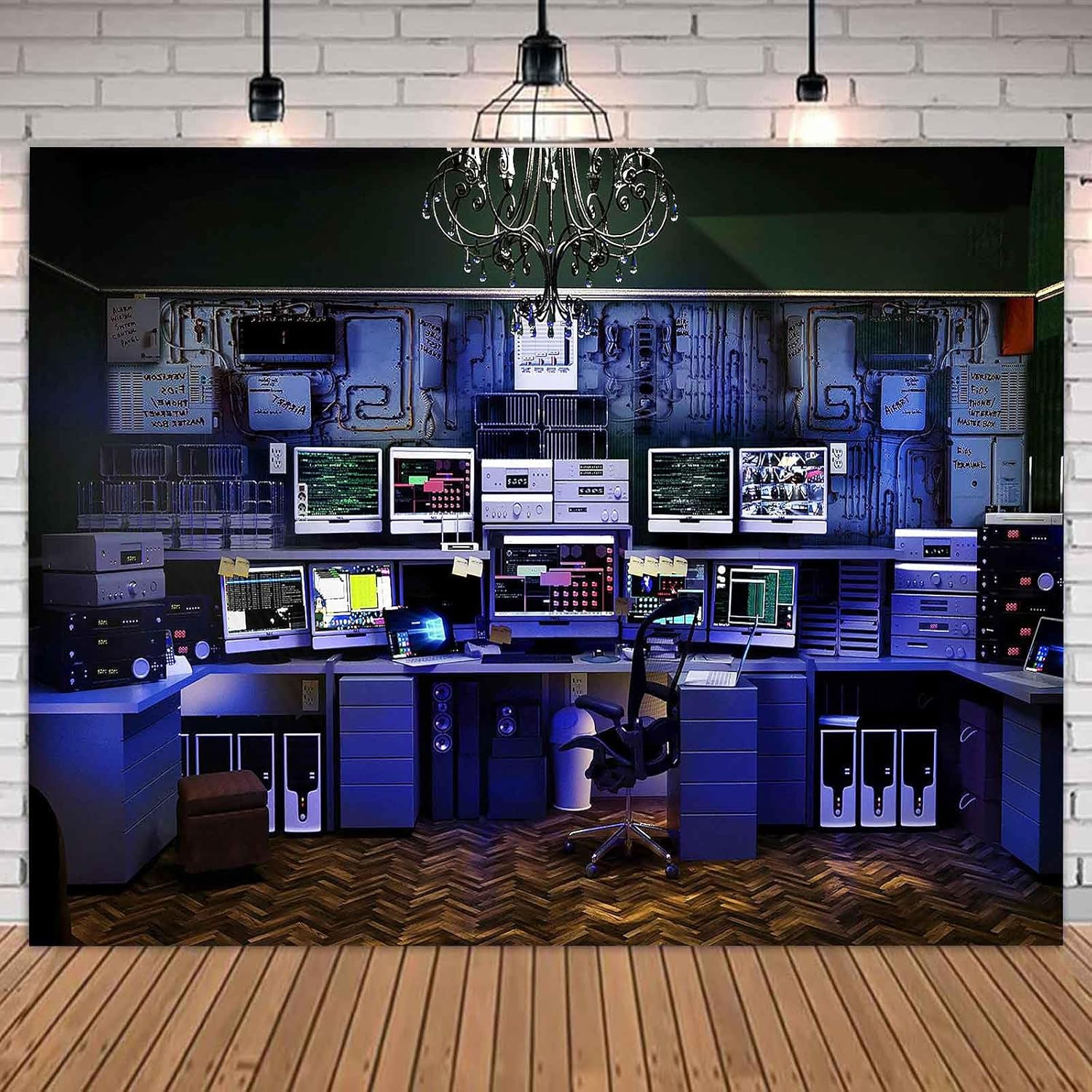 Custom Backdrop with Size Retro Computer Office Backdrop Blue Hacker Room Background for Photography Party Room Decor Photo Booth Props Supplies YUNBDZ008