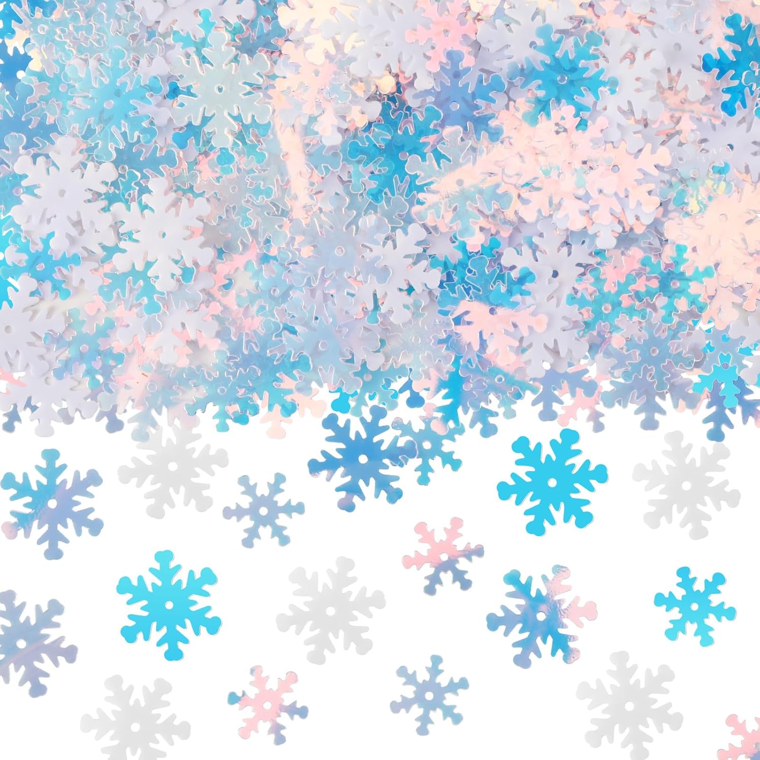 • Package Contents:Create a magical winter wonderland ambiance with snowflake confetti, including sparkling transparent and white colors, available in 0.6 inches and 0.8 inches sizes. Ideal for adding festival charm to any holiday setup, these snowflake decorations bring a touch of elegance and sparkle to every corner