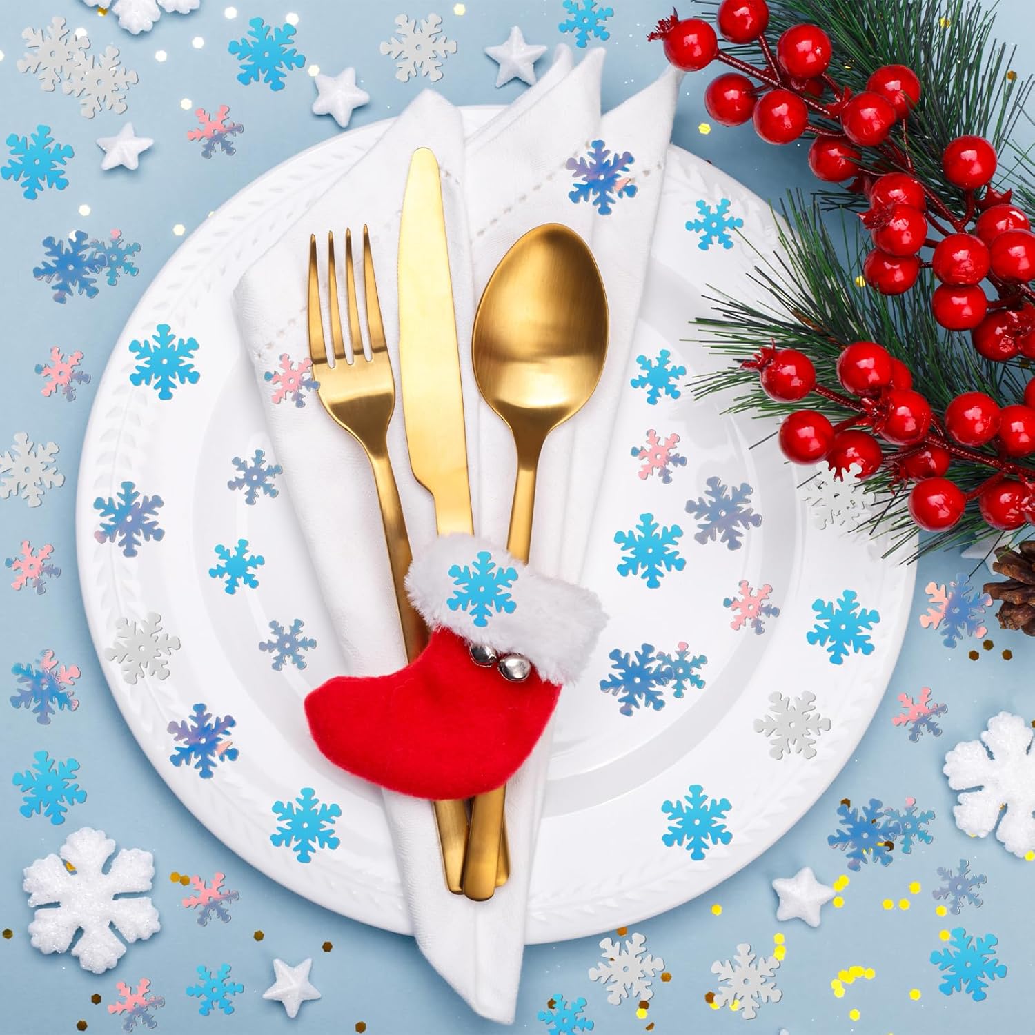 • Exquisite Snowflake Confetti: The snowflake confetti is the good addition to DIY holiday projects, incorporating winter confetti into greeting cards, gift wrap, ornaments, or centerpieces. With exquisite snowflake shape and glittery finish, these snowflake decorations bring a touch of magic to your decorations and create a memorable winter setting