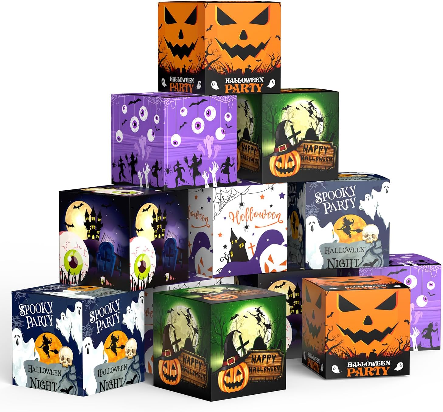 • Multi-Use :Not just candy boxes,these Halloween boxes for treats are ideal for decorating party tables, dressing up windows, or adding flair to DIY craft activities. Their versatility makes them perfect for school events, office parties, or Halloween-themed retail displays, all in one affordable set.