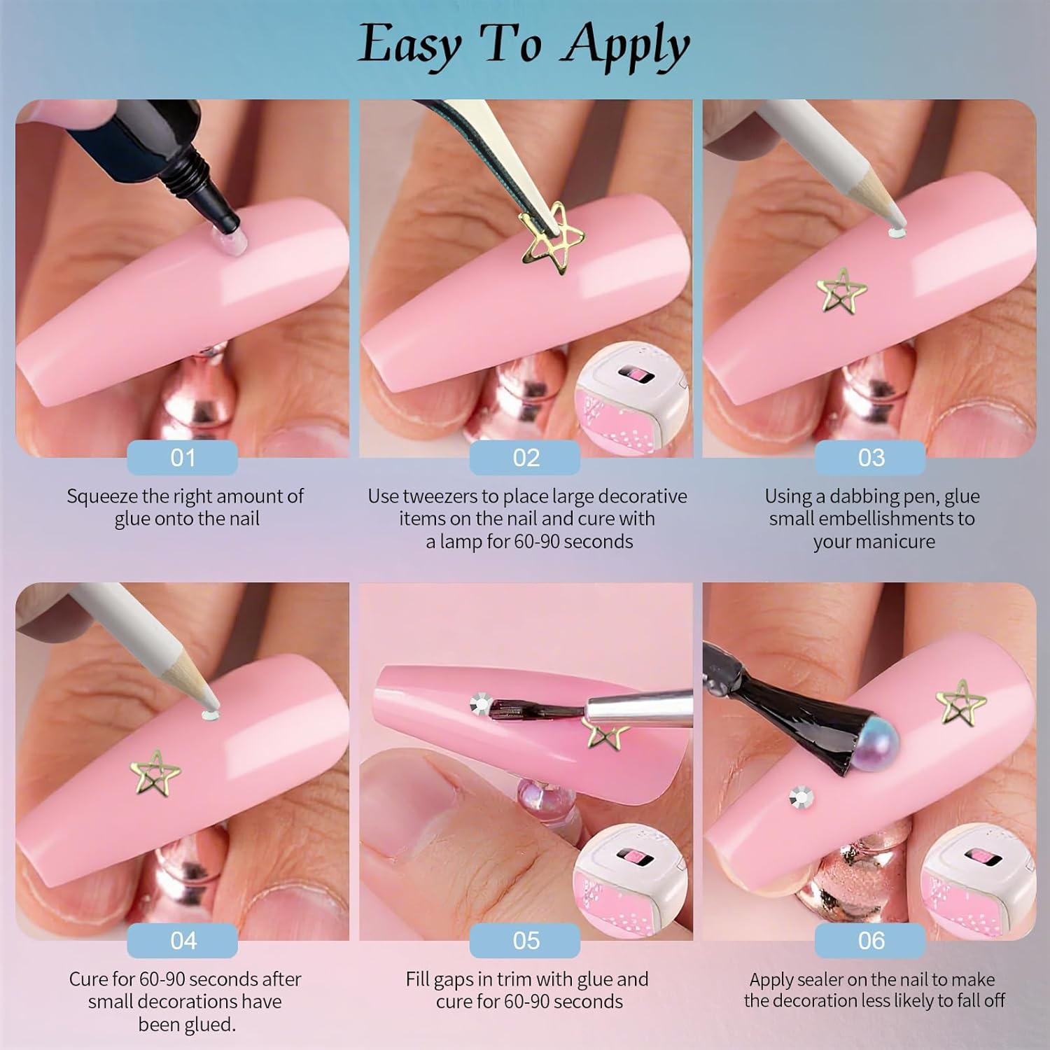 • Quality Materials: All nail charms and gems are made of premium materials. The rhinestones have strong adhesion (easy to stick with glue, not included) and won’t easily fall off. The gold stickers are durable, with clear patterns that don’t fade or peel, ensuring your nail art stays gorgeous for a long time. Safe for all - day wear, even suitable for sensitive nails.