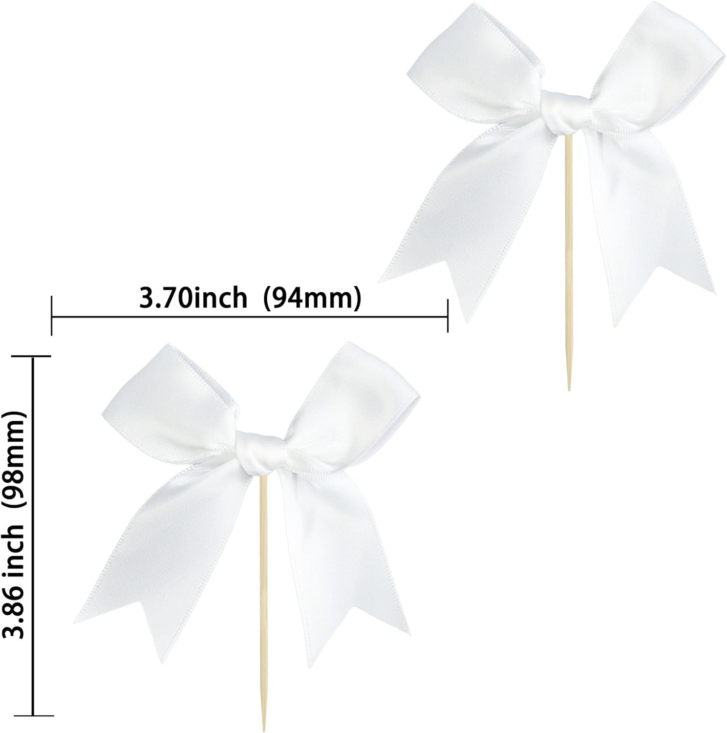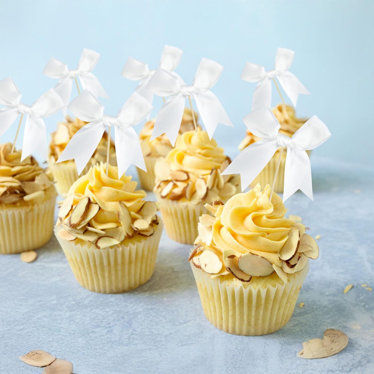 Ephlyn 24Pcs White Bow Cupcake Toppers Bow Cake Topper Birthday Decorations Mini Bowknot Cupcake Picks for Coquette Theme Party Decoration Bachelorette Bridal Engagement Wedding Party White
