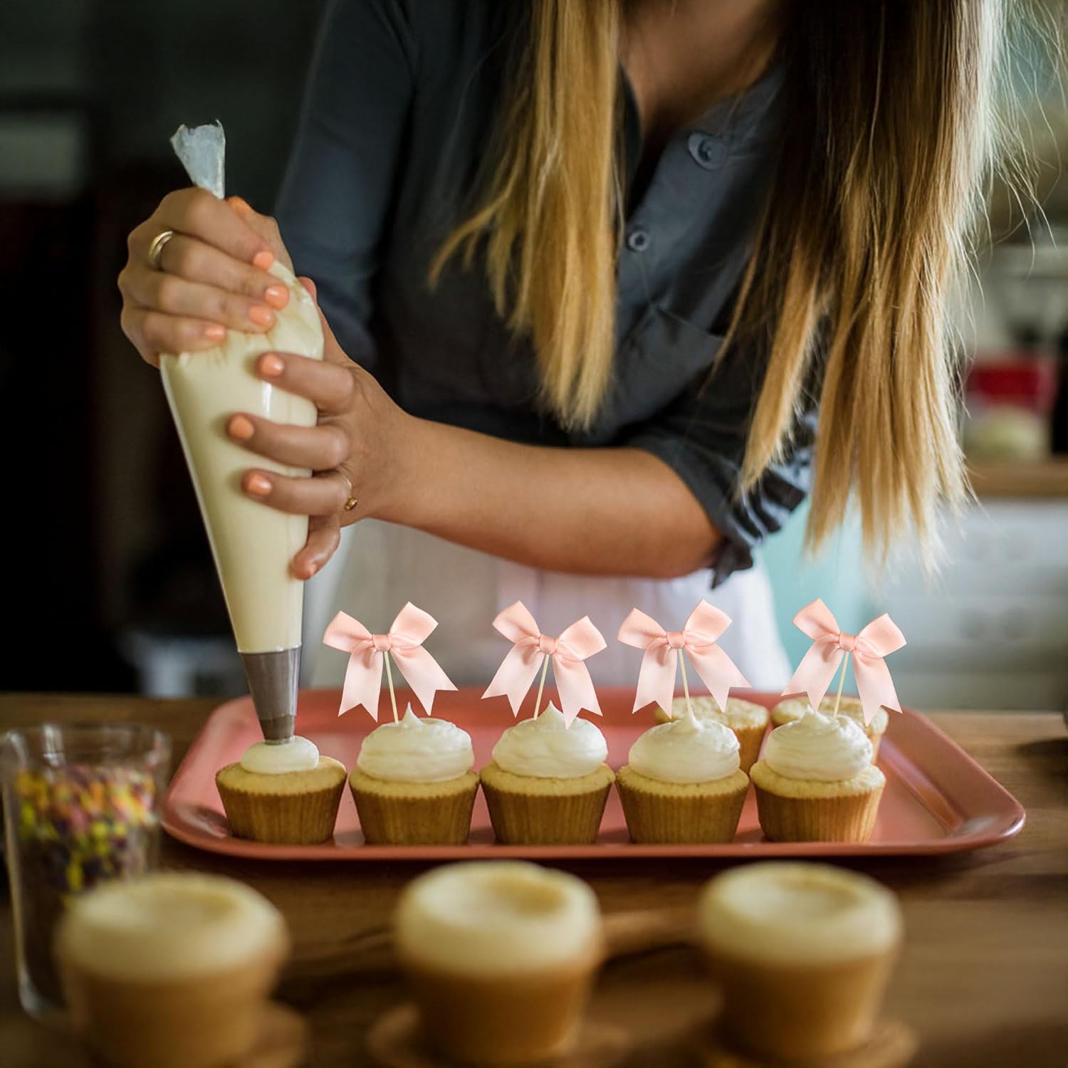 • 【NO DIY Required】: Bow Cupcake Toppers can put in the cake directly! Bow Cupcake Toppers save your time and super easy to use. You can easily dress up your cakes, yes! but don't stop there, put them into desserts, cookies, fruit pieces, appetizers, muffins and so much more!