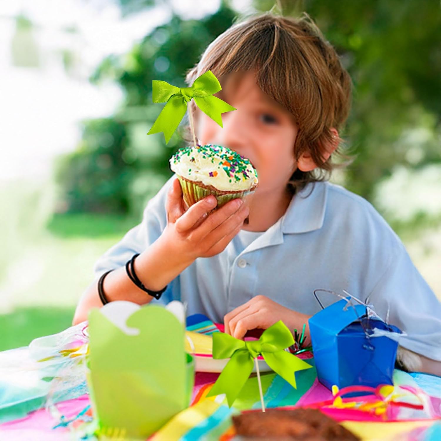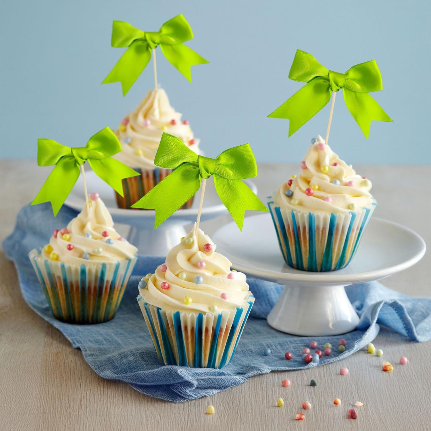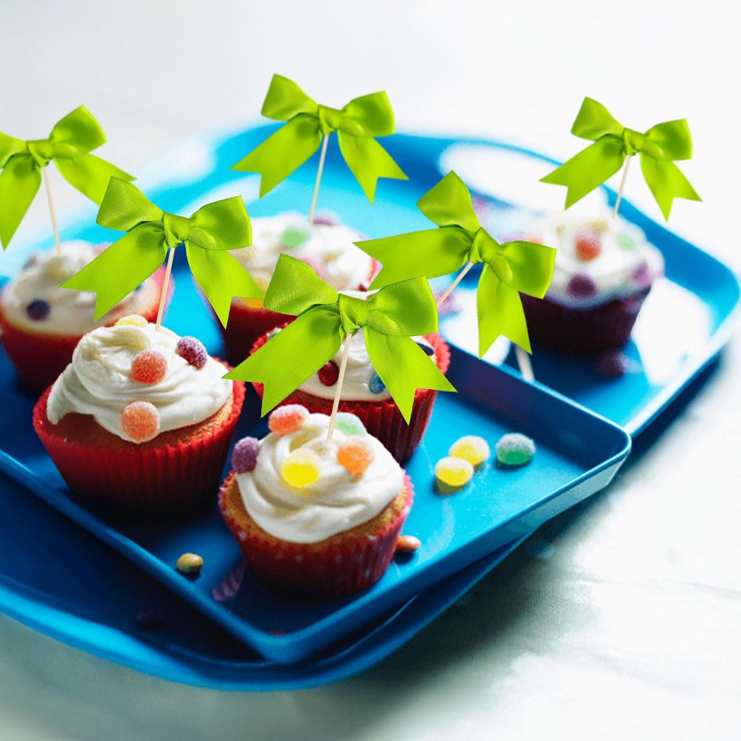Ephlyn 24Pcs Pink Bow Cupcake Toppers Pink Bow Cake Topper Birthday Decorations, Mini Bowknot Cupcake Picks for Coquette Theme Party Decoration Bachelorette Bridal Engagement Wedding Party Green
