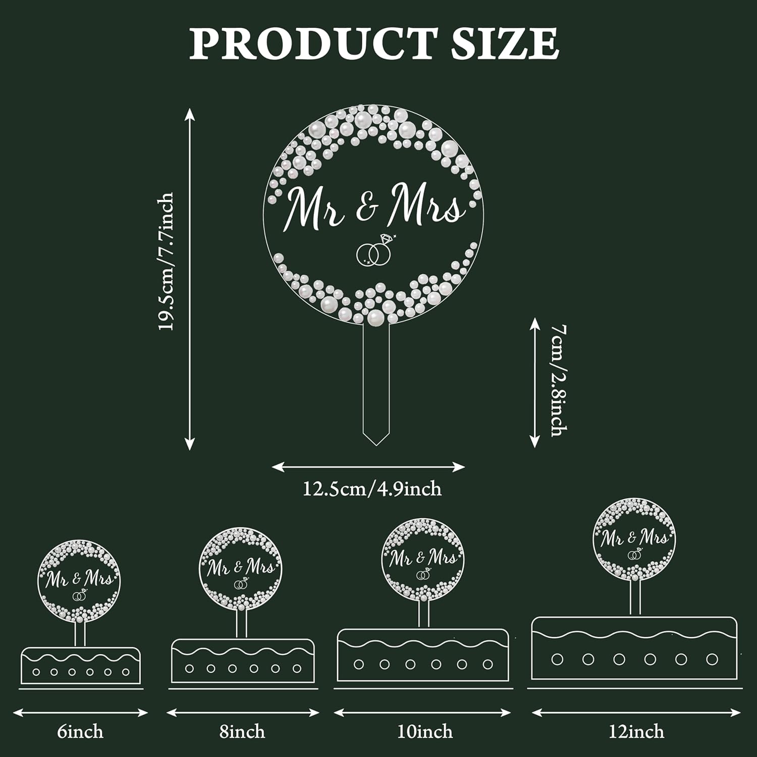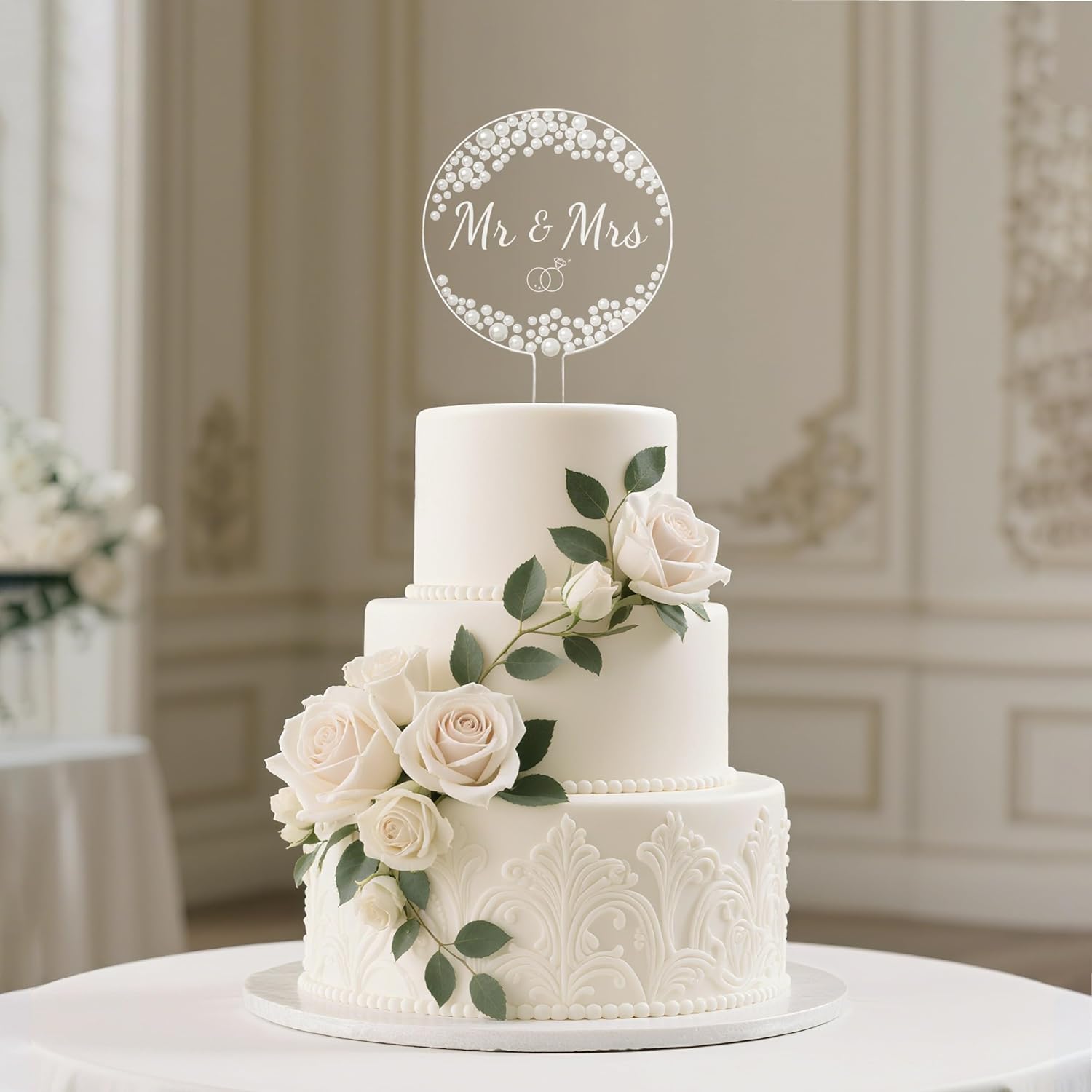 • Design: Features crystal-clear acrylic adorned with faux pearls that radiate elegant brilliance, while its minimalist yet sophisticated design complements both modern and classic wedding cakes as a timeless focal point