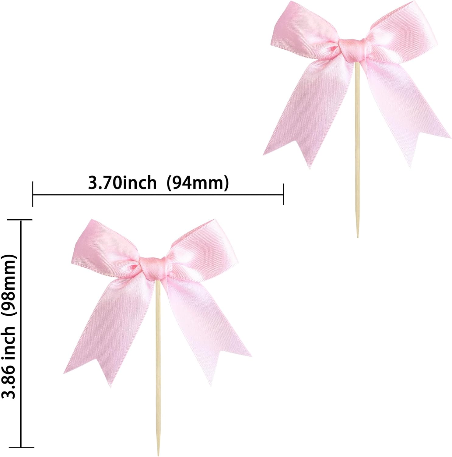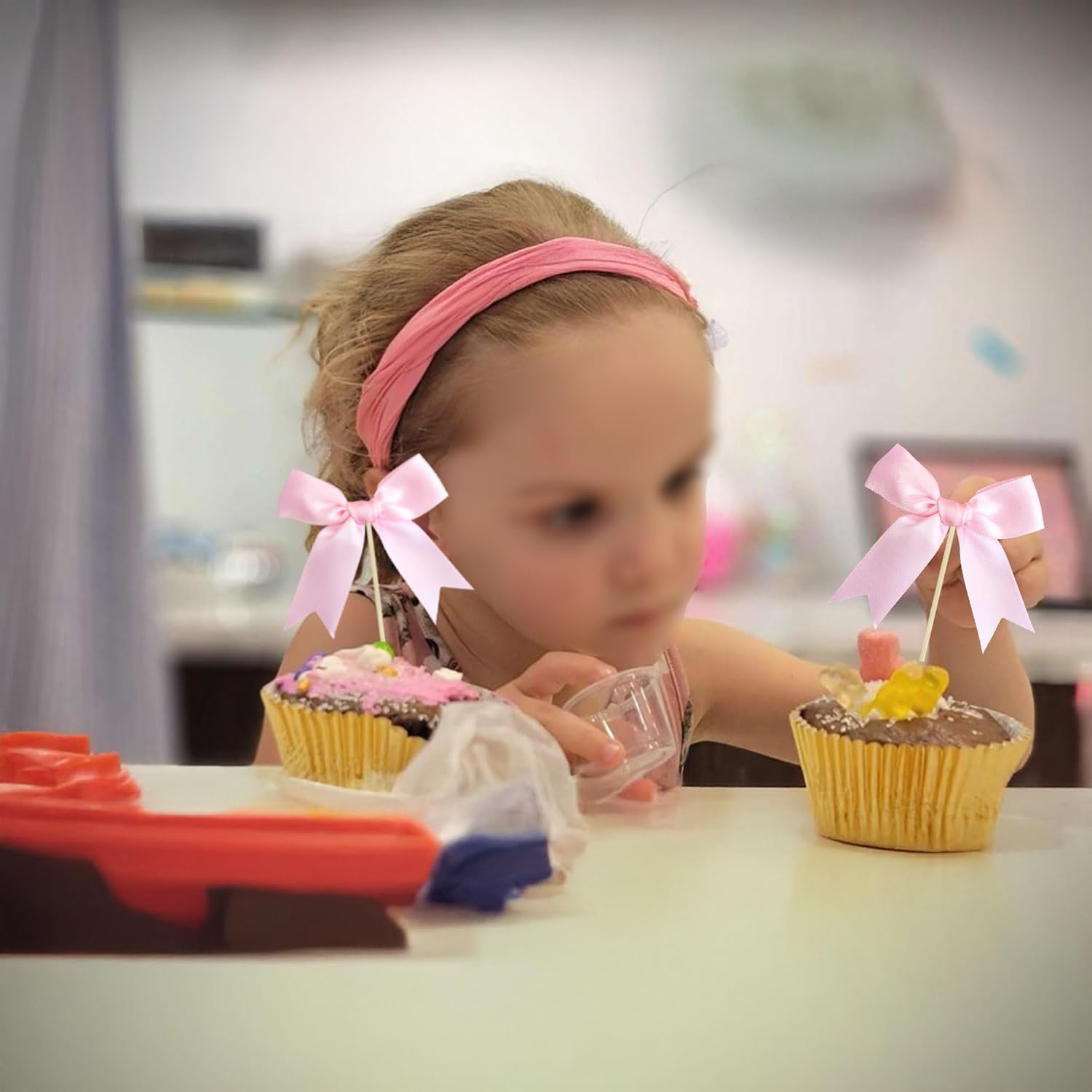 Ephlyn 24Pcs Pink Bow Cupcake Toppers Bow Cake Topper Birthday Decorations Mini Bowknot Cupcake Picks for Coquette Theme Party Decoration Bachelorette Bridal Engagement Wedding Party Pink