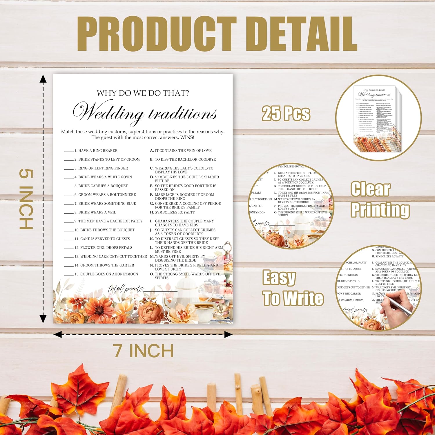 Fall Bridal Shower Games Cards, Wedding Traditions Wedding Bachelorette Party Games, Fall in Love Bridal Shower Decorations, 25 Cards, G12