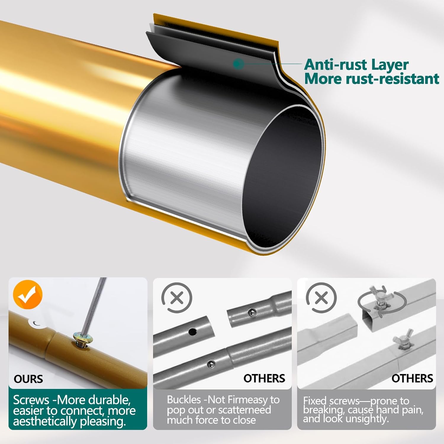 • 【 ​​Professional-Grade Construction​​ 】Heavy-duty rust-resistant metal frame with gold/white powder coating ensures indoor/outdoor durability. Thicker square tubes (19mm diameter) prevent bending, surpassing flimsy round-tube competitors.