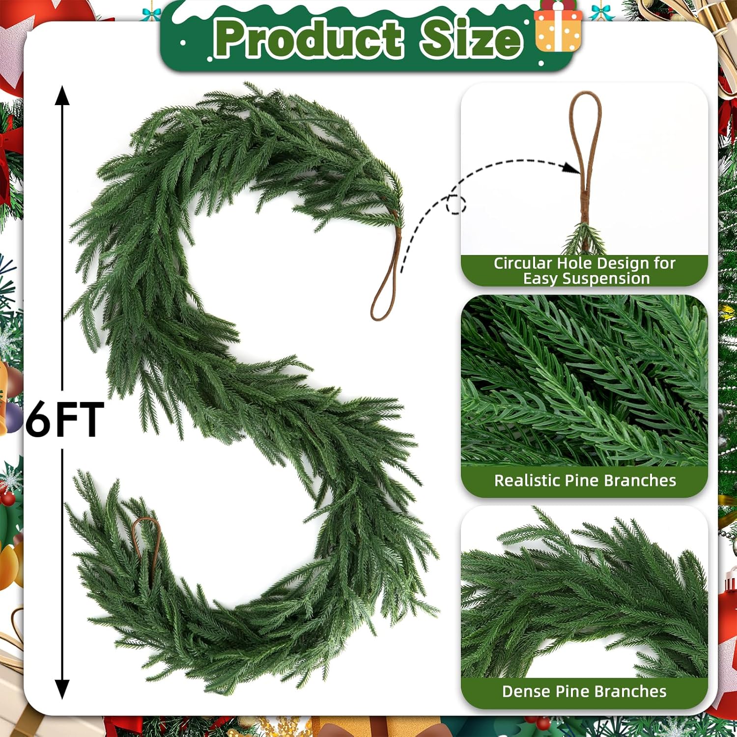 • High-Quality & Fullness: Crafted from high-quality materials, each Norfolk pine garland is generously sized at 6 feet and features around 60 pine branches—more than many standard models available. This full, lush design brings a joyful and festive atmosphere to any space, making even the simplest areas feel warm and holiday-ready