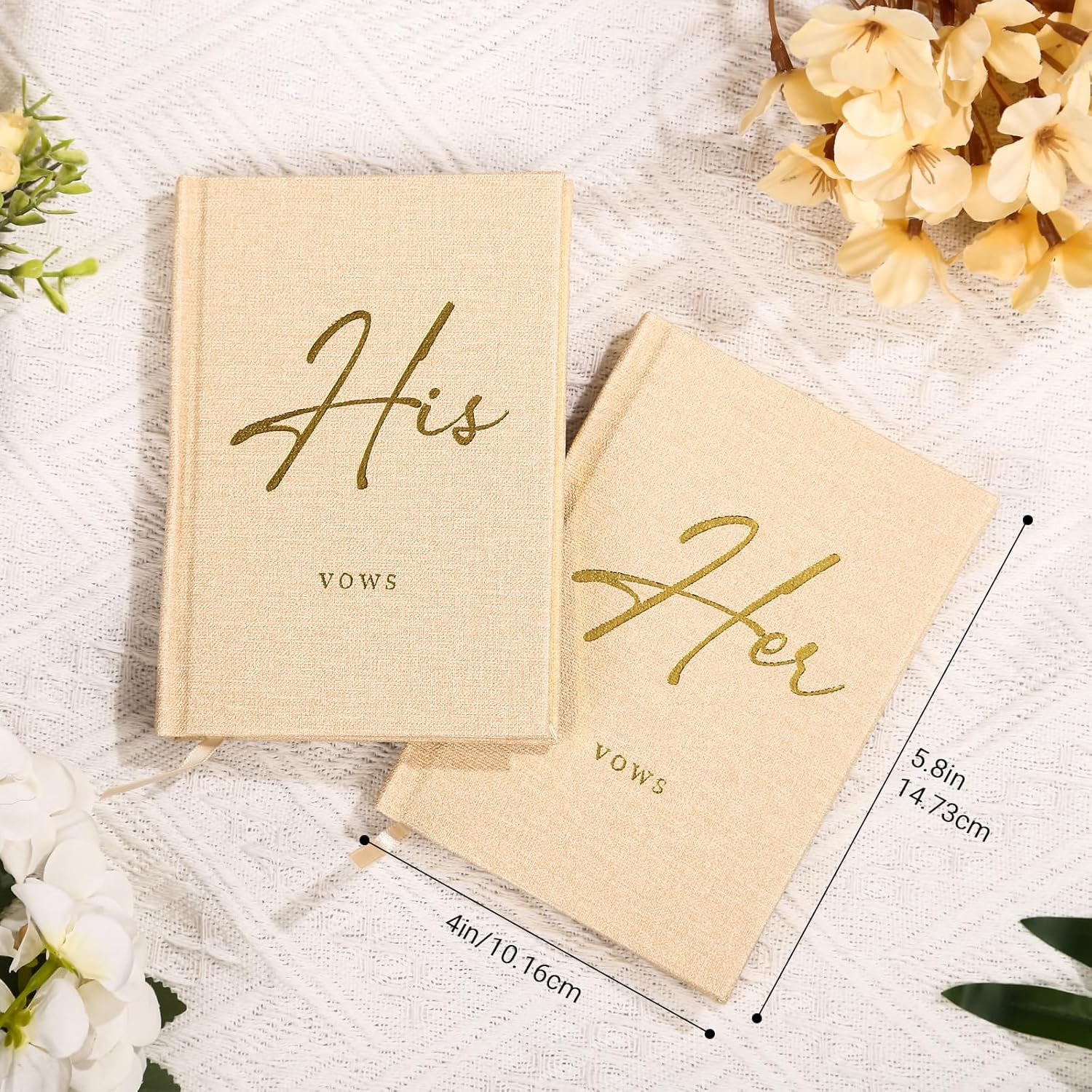 • Timeless Elegance with Linen Covers & Gilded Details-Crafted for couples who value understated luxury, this matching set of vow books his and hers features a linen-textured cover in a warm neutral hue—an elegant backdrop for promises that endure. Radiant gold-gilded edges illuminate every page, while minimalist gold foil accents ("His" and "Her") elevate the design. The tactile linen texture and neutral palette seamlessly blend with any theme, making these wedding vow books his and hers a wedding must have for timeless sophistication.
