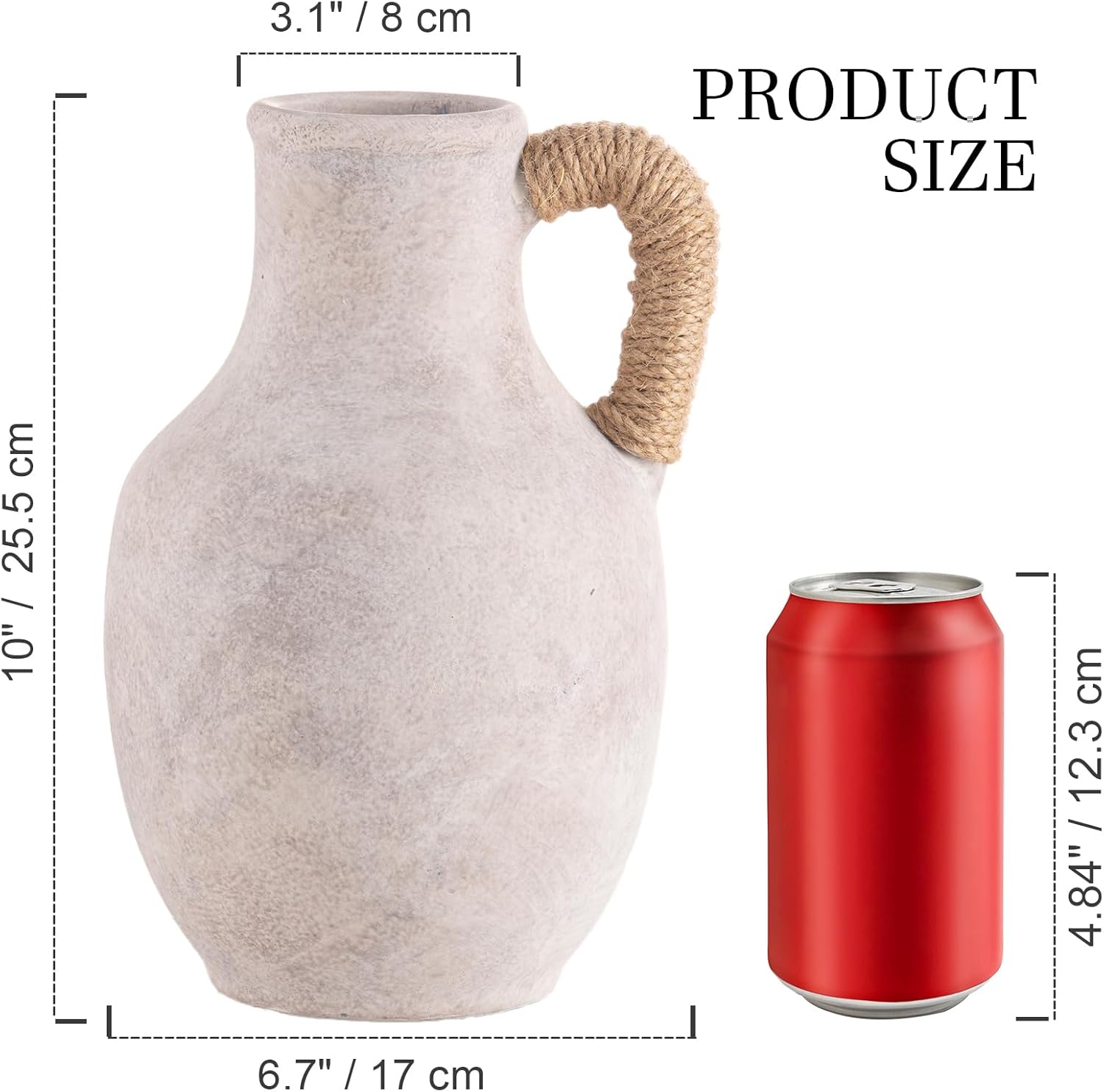 Ceramic Flower Vase Home Decor - 10 Inch Large White Rustic Table Flowers Vases Living Room Bedroom Plant Decorations Farmhouse Vintage for Kitchen Shelf Office Coffee Dining Desk House Women