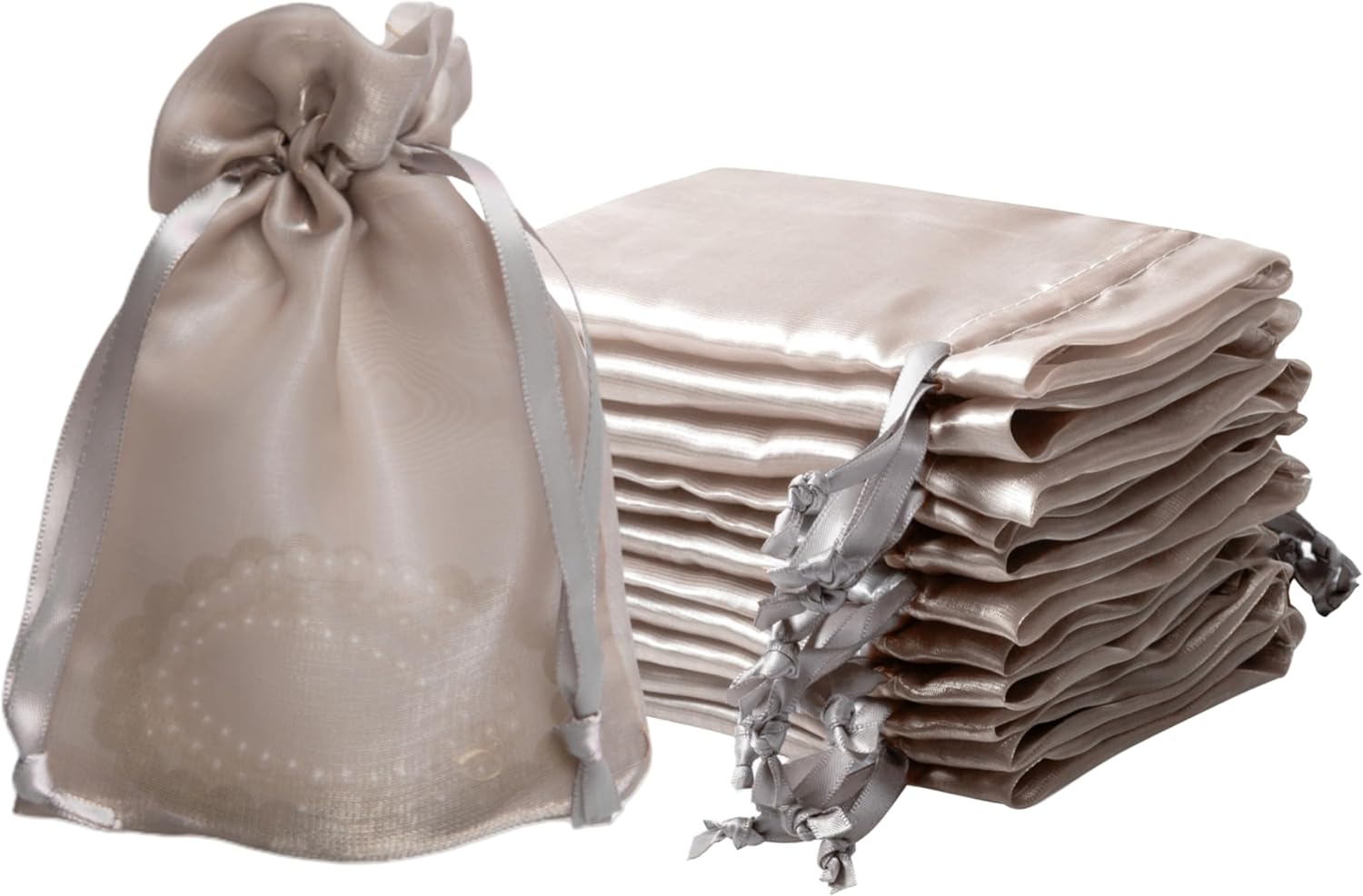 • PREMIUM MATERIAL: Crafted with high-density organza and satin drawstrings, these favor bags have a glamorous gloss that changes with the light, which is different from ordinary organza bags, makes it beautiful and elegant, which is good for special occasions. The delicate sheer fabric combines ethereal translucency with surprising durability, transform small items like jewelry and cosmetics into luxurious displays