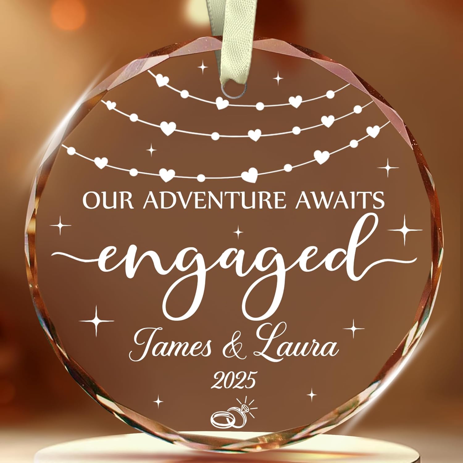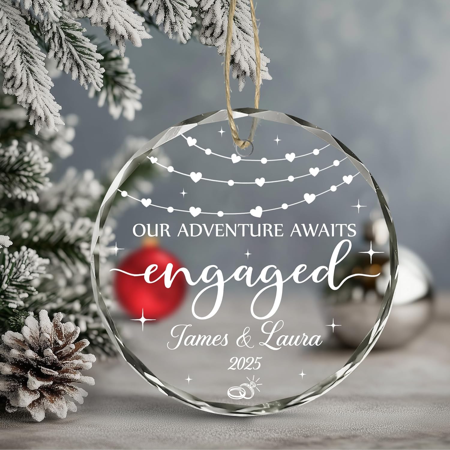 Personalized Engagement Christmas Ornament 2025 - Gifts For Newlywed Couples - Happy Engagement Gifts - Wedding Gift For Newlywed Couple, Bride And Groom