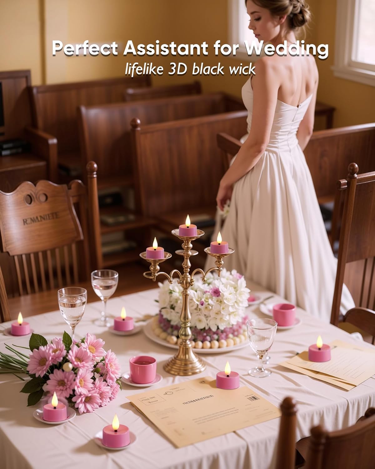 Amagic Flameless Pink Timer Remote Tealights Candles, 3D Black Wick Flickering Tea Light, 400+Hour Colored Votive Candles Battery Operated, Set of 12 for Romantic Wedding Decor, Baby Showers, Proposal