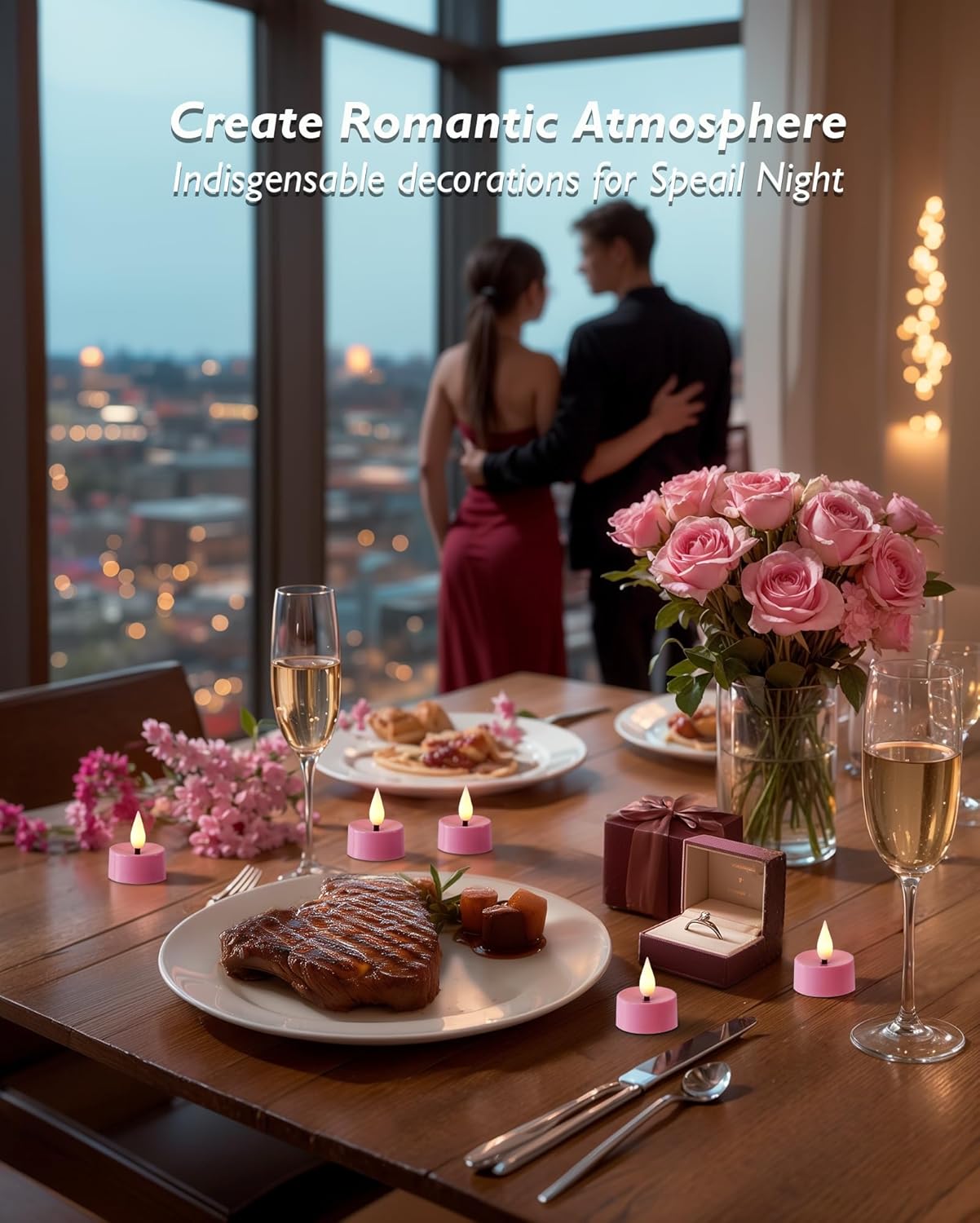 • Perfect for DIY Projects: The pack includes pink 12 LED tea lights, each measuring 1.5 in x 1.7 in. Their compact size makes them a delightful addition to tealight holders, fireplaces, jack-o'-lanterns, glowing bags, or anywhere you desire a charming touch