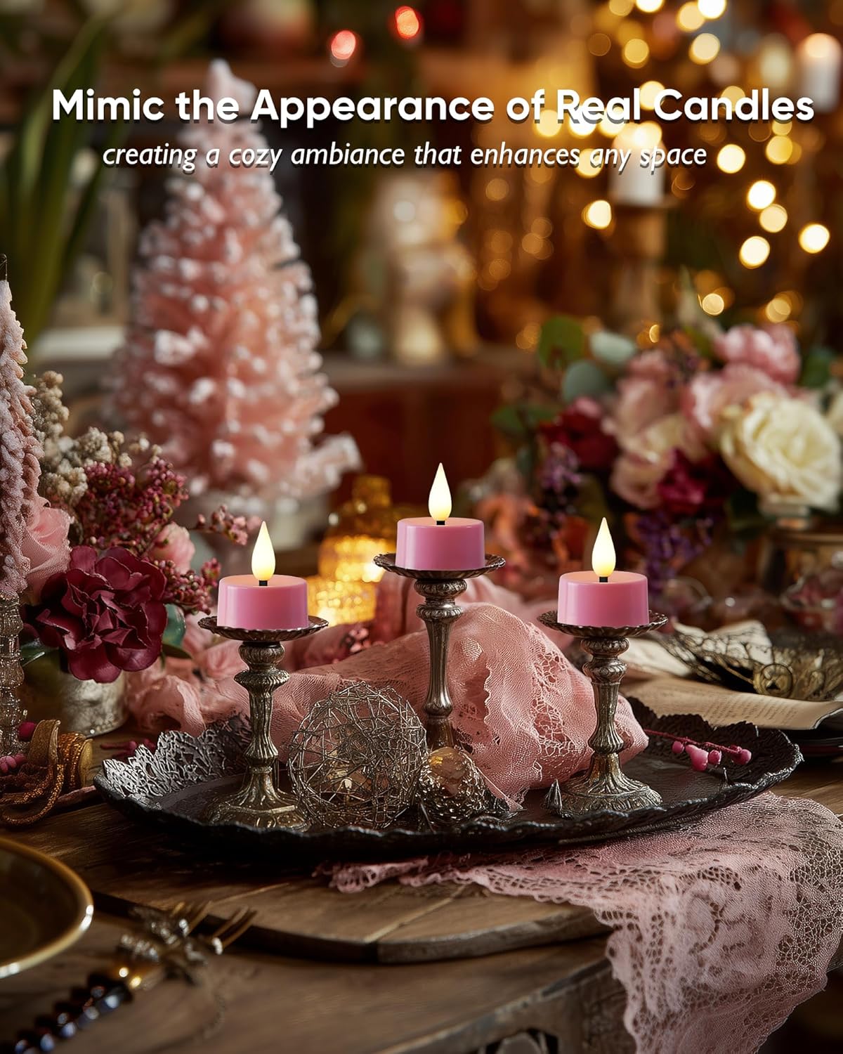 • Romantic Decor: Create a warm, charming ambiance with our real wax pink fake Candles, which are perfect for Light updates, Valentine's Day, dinners, special nights, home decor, Halloween, Christmas