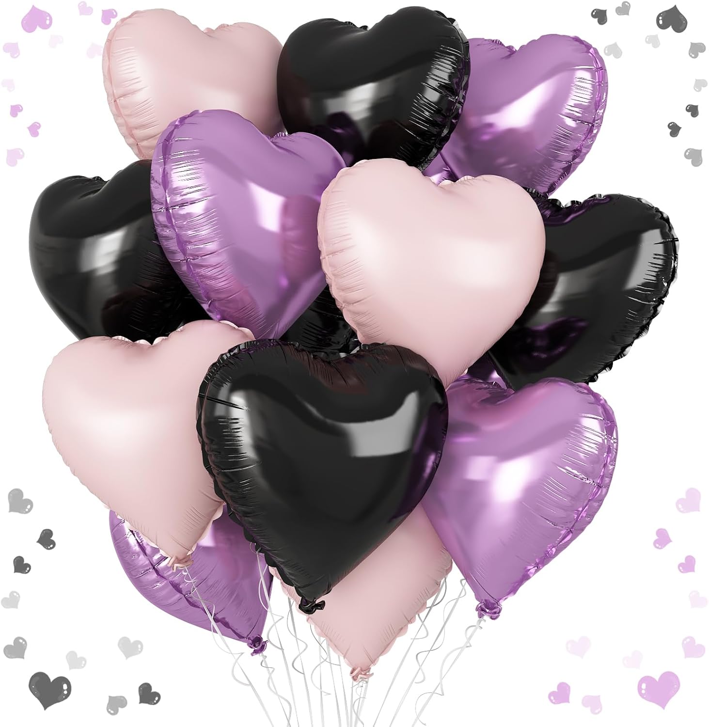 • Charming Purple Pink Black Heart Balloons: Elevate your celebration with our set of 12 heart-shaped baby pink purple and black balloons, each measuring 18 inches. Accompanied by a ribbon, these balloons are ideal for creating a festive and loving atmosphere at any special event.