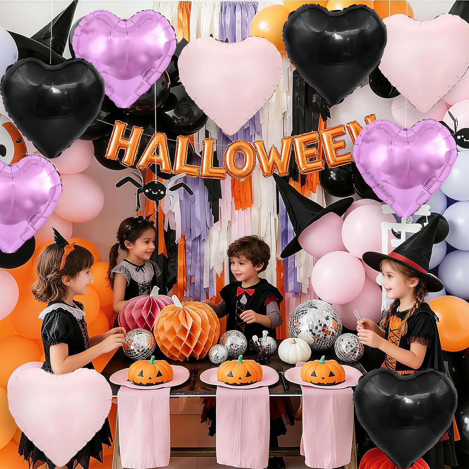 Purple Pink Black Heart Balloons, 18 Inch Baby Pink and Purple Black Heart Foil Shape Balloon, 12PCS Large Love Helium Balloons for Halloween Birthday Bridal Shower Wedding Anniversary Party Decor