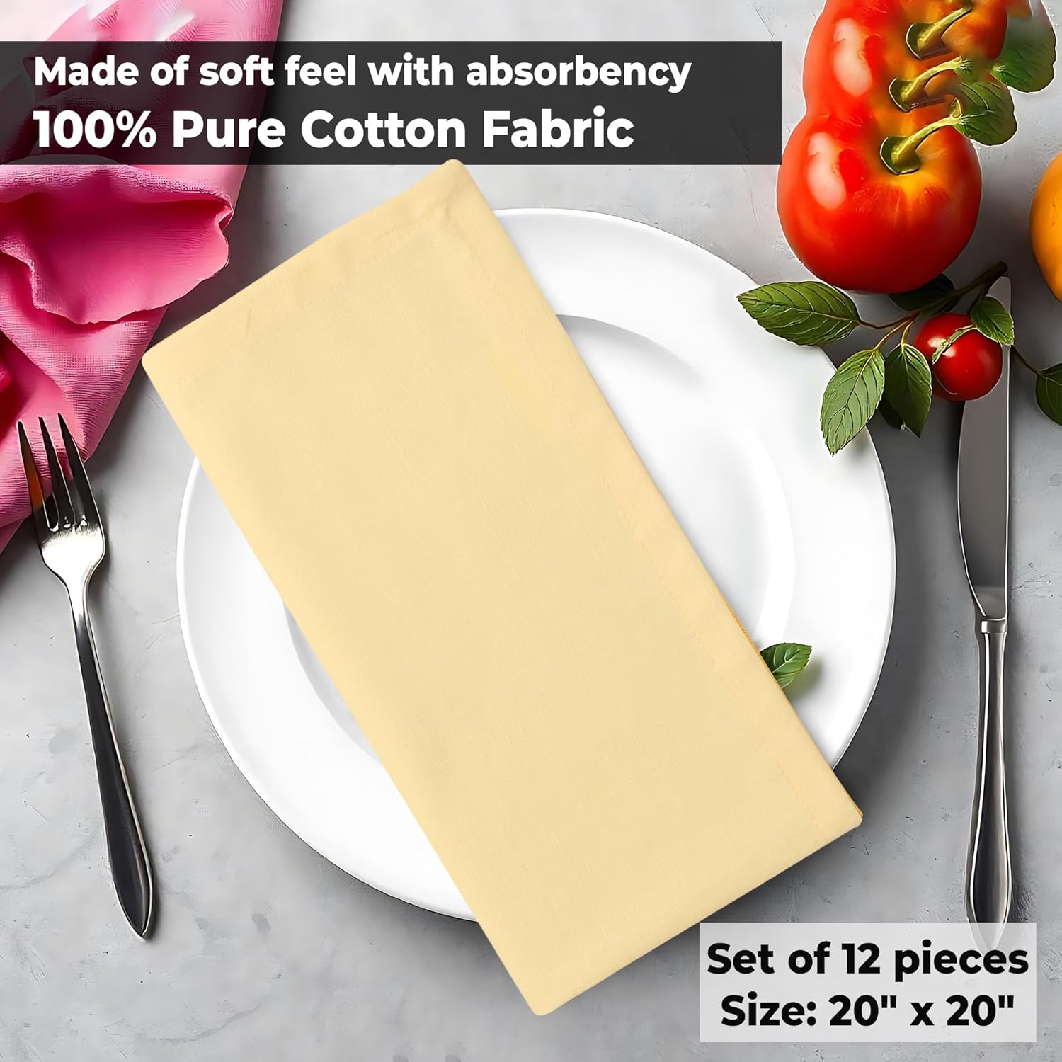 Urban Villa Fall Cloth Napkins 100% Cotton Slub Absorbent Dinner Napkins (Set of 12) Oversized 20x20 Inches Solid Yellow Color Soft Durable Reusable Washable Ideal for Everyday Use Wedding Parties