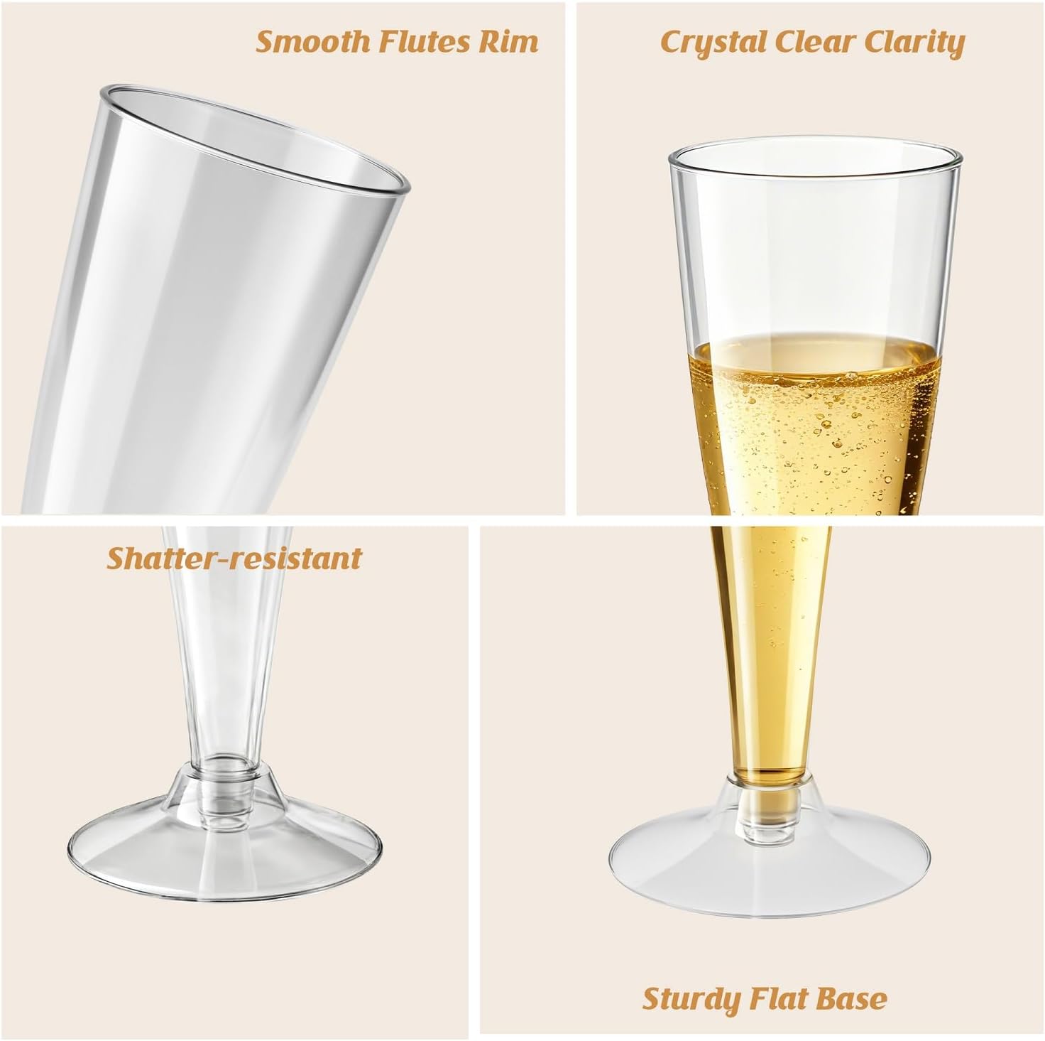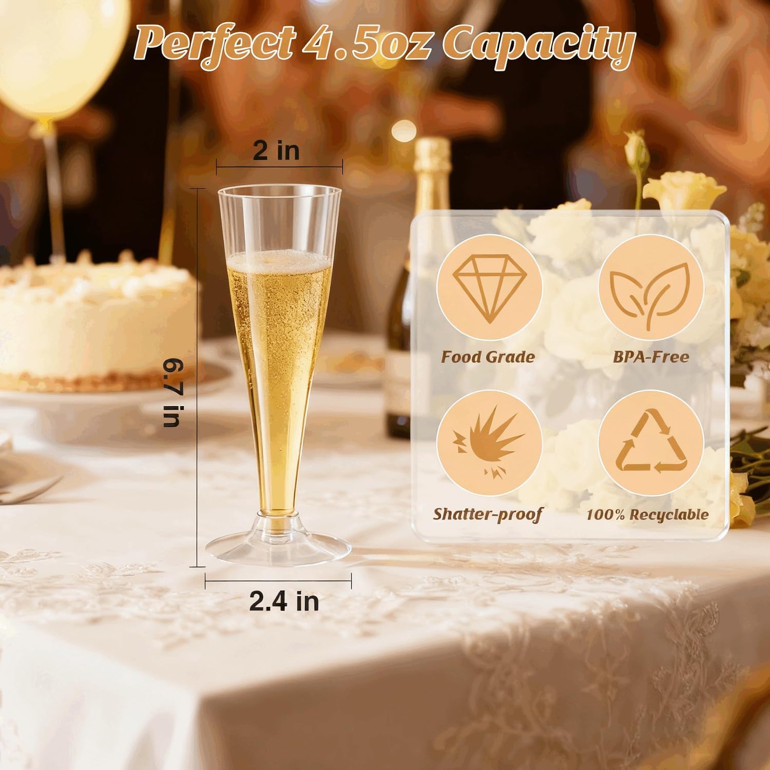 • 100 Pack Value โ€“ Includes 100 clear plastic champagne wine glasses (4.5oz), enough for big celebrations.
