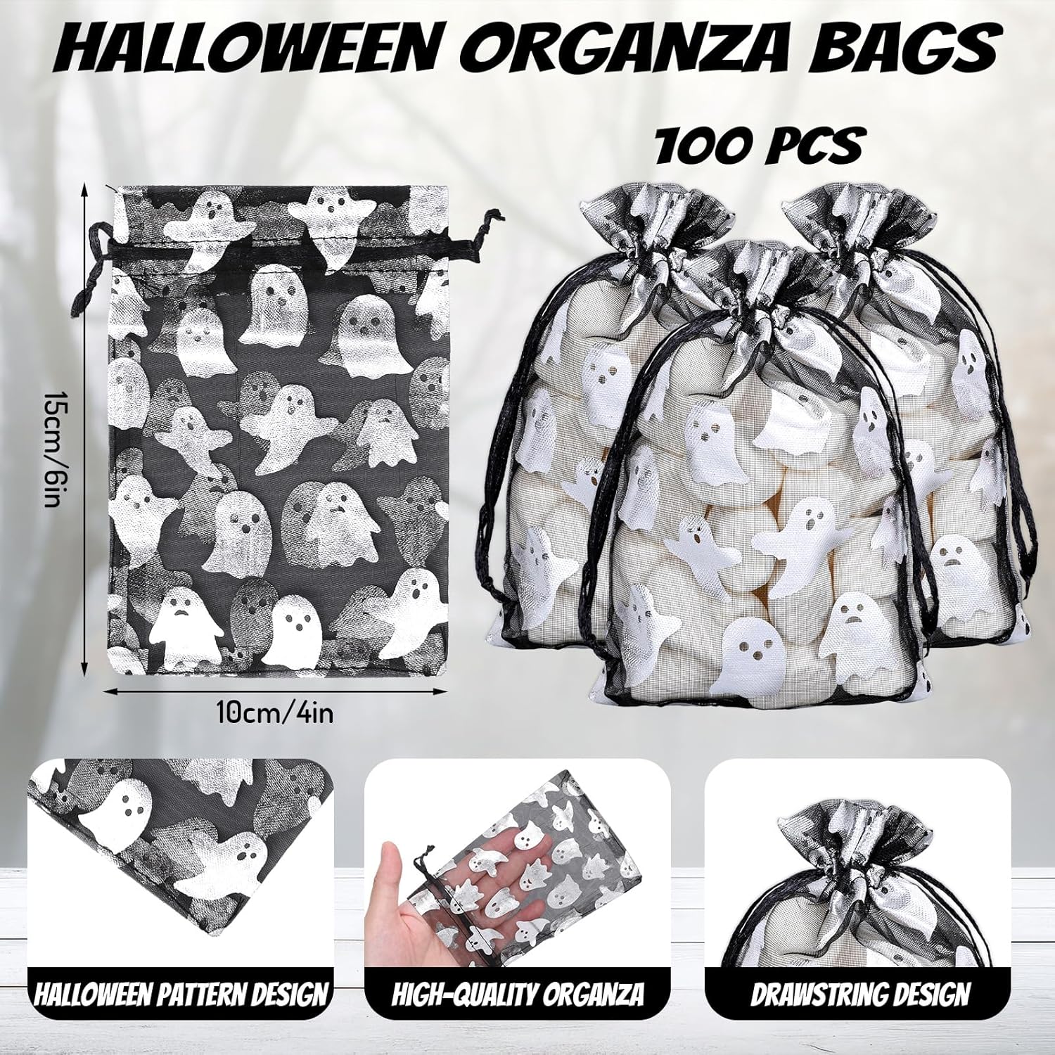 • Large Quantity: This package includes 100 pieces Halloween organza bags, all in same design, enough quantity for your party decorations and replacement