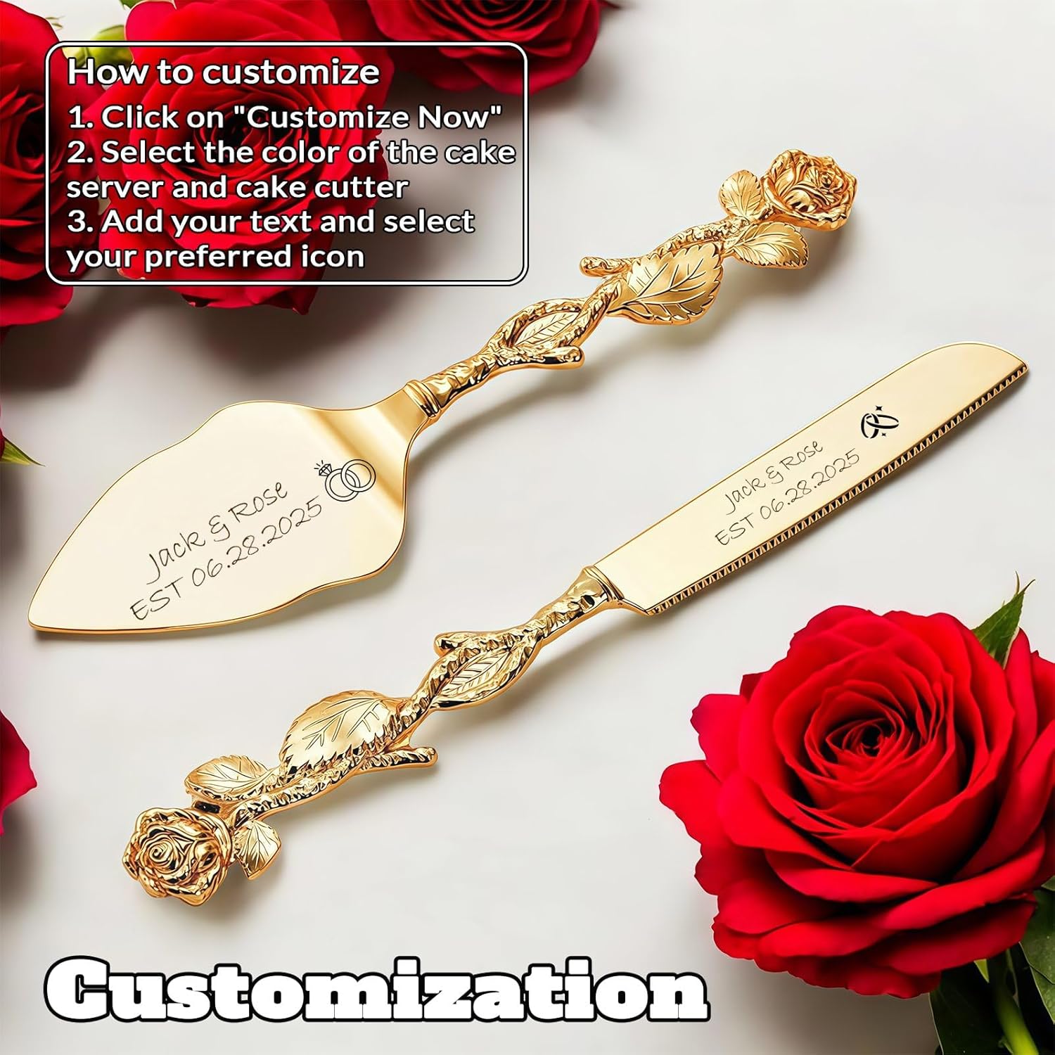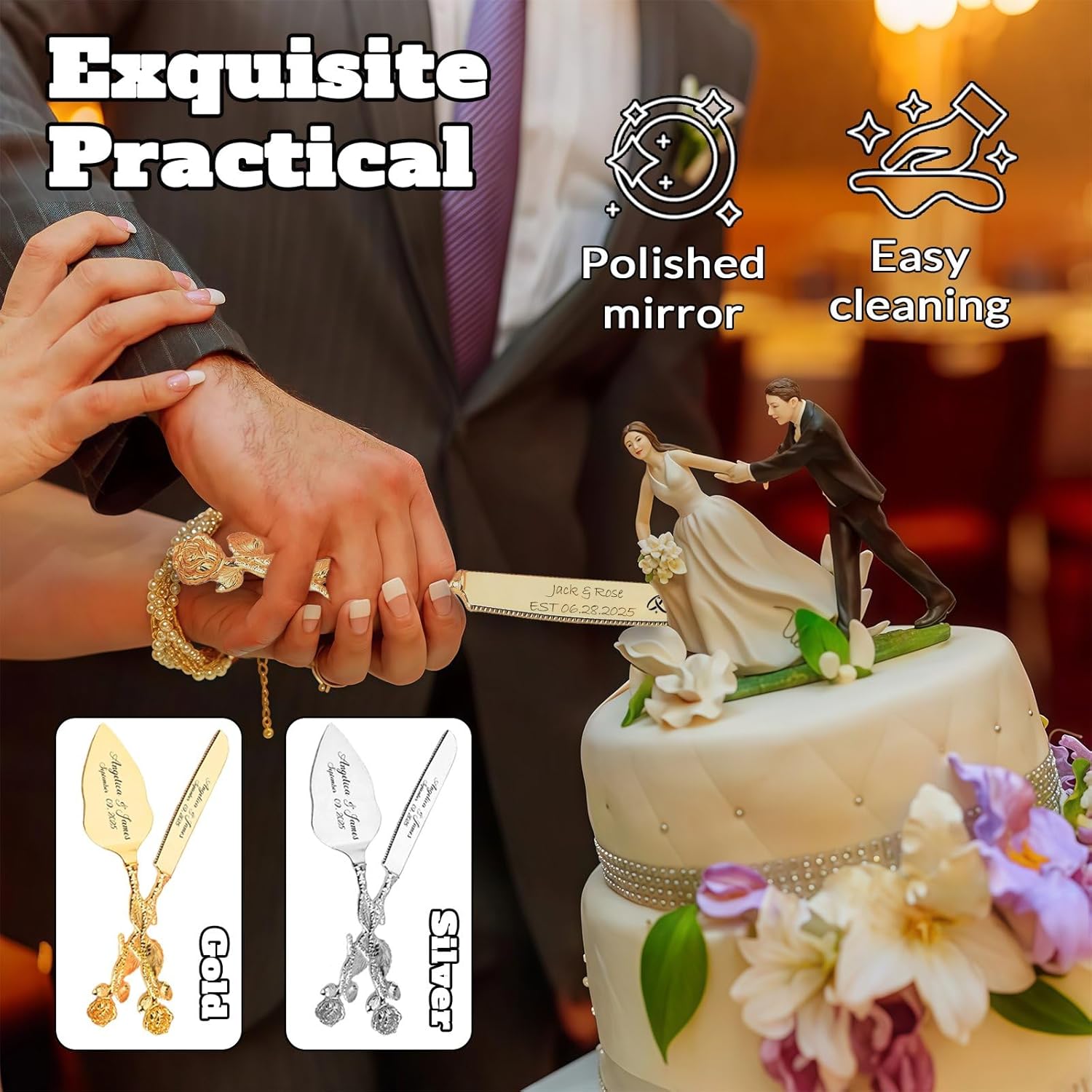 • Personalized Wedding Cake Cutting Set - Engrave names, dates, or custom designs for a unique keepsake; laser engraved to never fade, commemorating your marriage with an intimate touch for your special wedding day