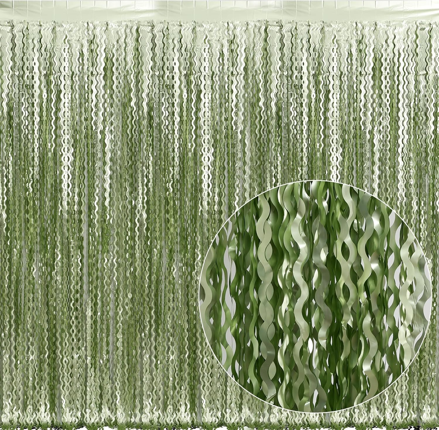 • 【LATEST Wavy Shape Tinsel Backdrop】The sage green foil curtain backdrop is made of aluminium foil with wavy shape, good for adding sparkle as decorations for parties