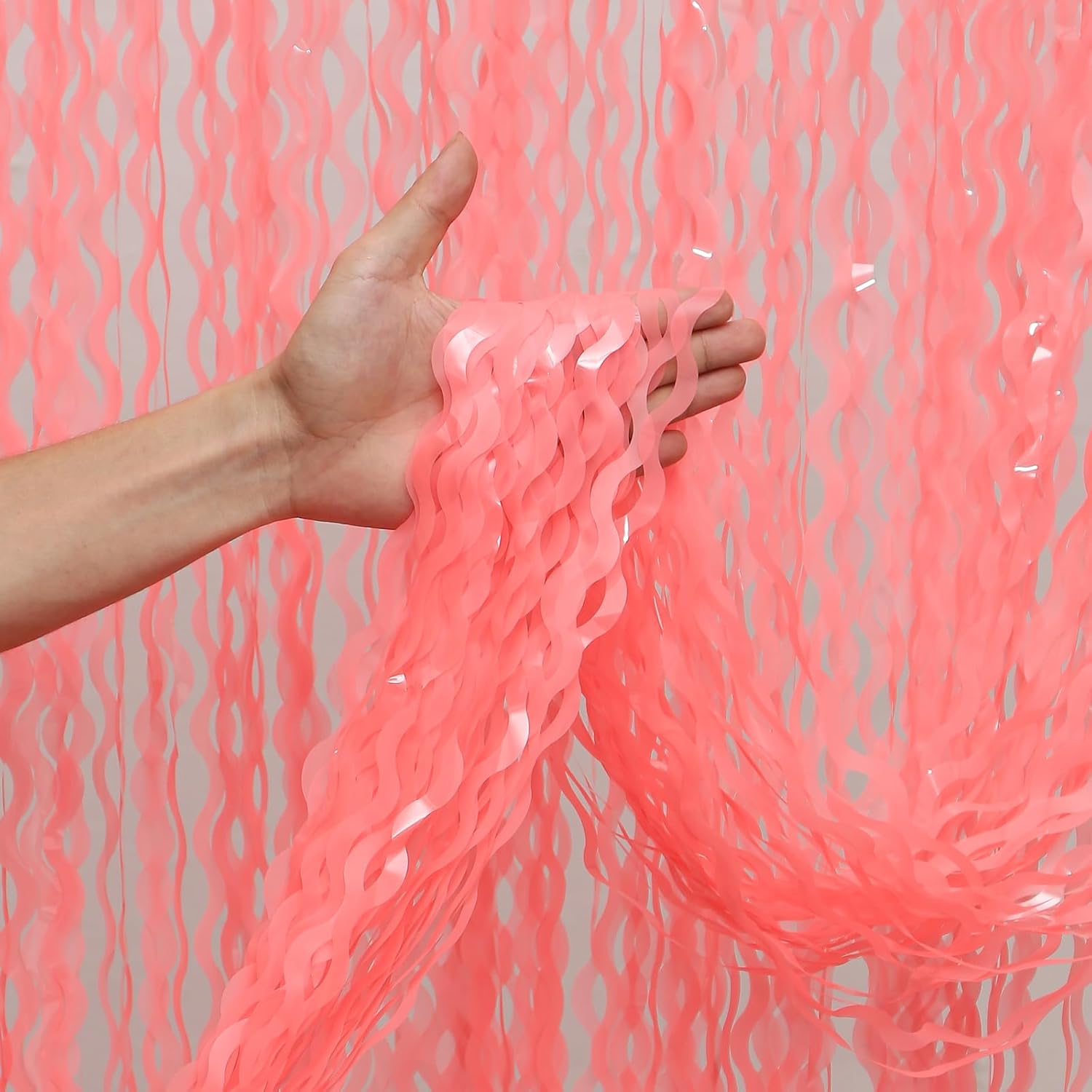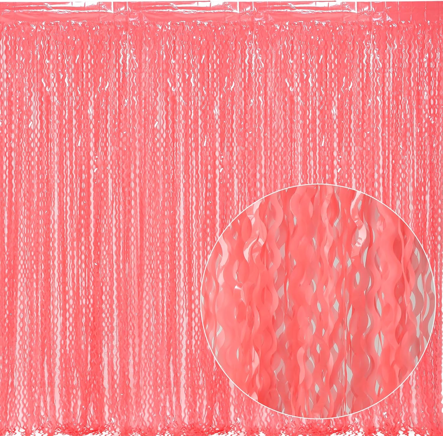 • 【LATEST Shiny Surface +Wavy Shape Tinsel Backdrop】The watermelon red foil curtain backdrop is made of aluminium foil with shiny surface +wavy shape, good for adding sparkle as decorations for parties