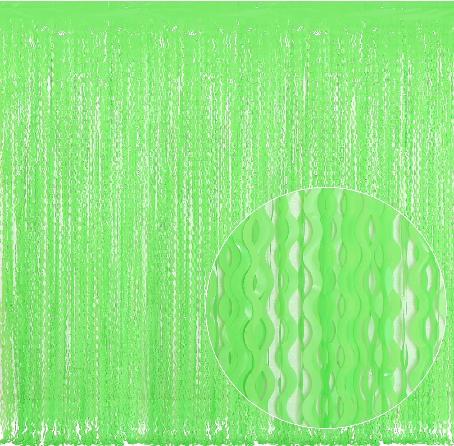 • 【Easy To Use】This green foil backdrop comes with double sided tape on the back of them, what you need to do is just gently take it out of the package, peel the tape off then paste the fringe curtain on the top of wall or door