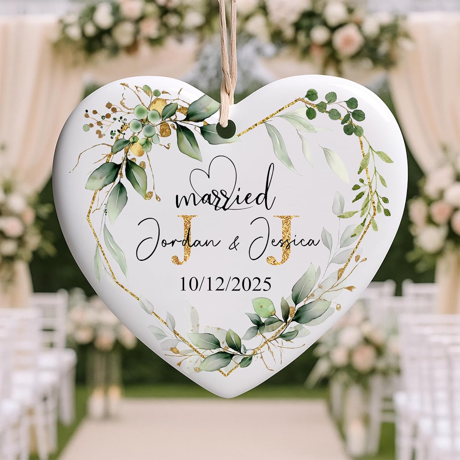 Love Signal Personalized Married Ceramic Ornament, Mr Mrs 2025 Ornaments Custom Name Date, Ornament Gift for Wedding Newlywed Engaged Couple Christmas