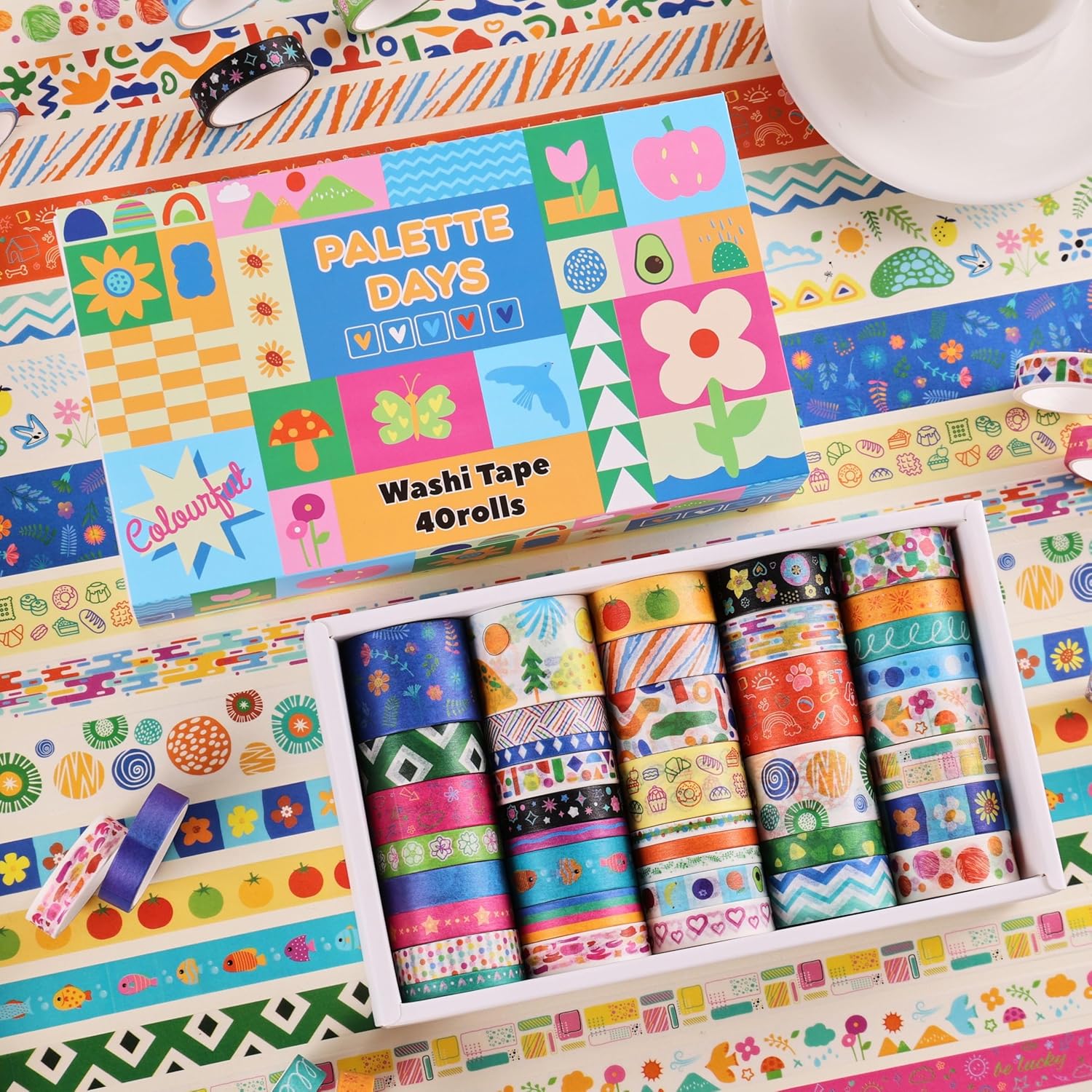 • ✨The washi tape supplies are made of high-grade durable materials. These decorative tapes can be repositioned and torn easily. With accurate printing, they show clean and bright colors that perfectly reflect the "Palette Days" vibe. They can be easily peeled off without leaving any sticky residue, which makes it a great craft tape set for kids and adults alike.