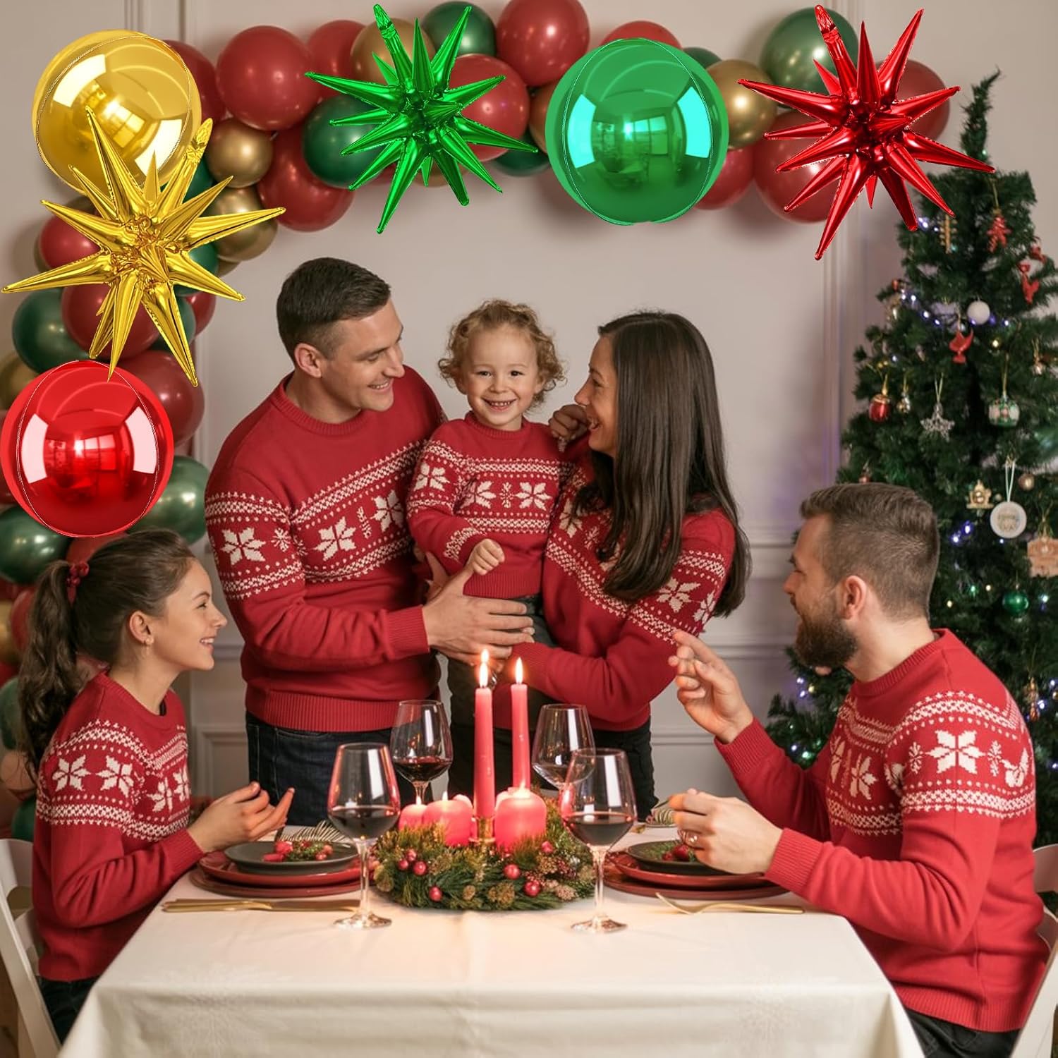 • 【Package】The package includes 3pcs 22Inch 4D ball foil balloons(red x 1,green x 1,gold x 1),3pcs 22Inch star foil balloons(red x 1,green x 1,gold x 1),and ribbon.These huge balloons can help you decorate your party better.