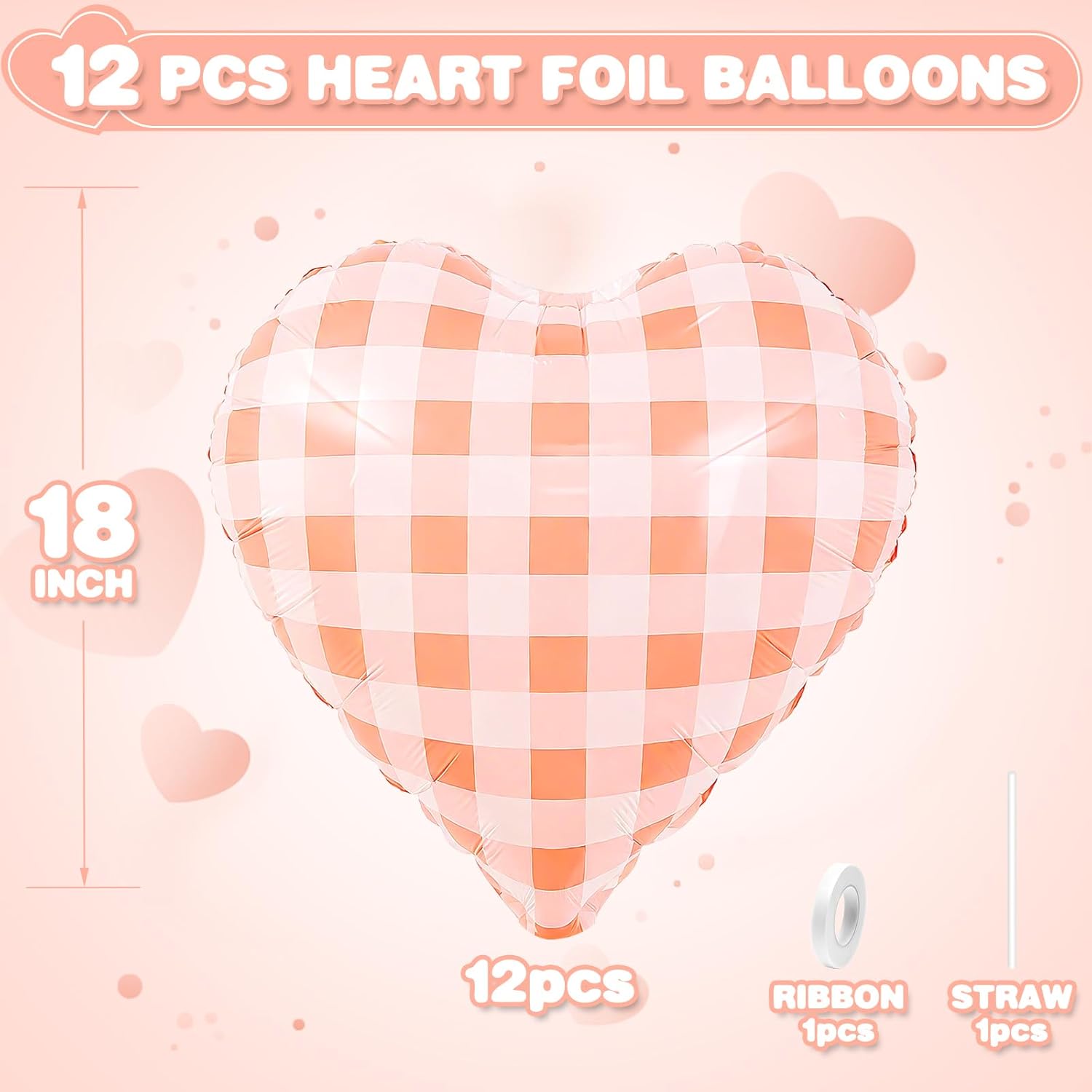• 12PCS HEART BALLOONS:Package include 12pcs red white checkered heart foil balloons,1pc straw.Large enough to help you better decorate your party.