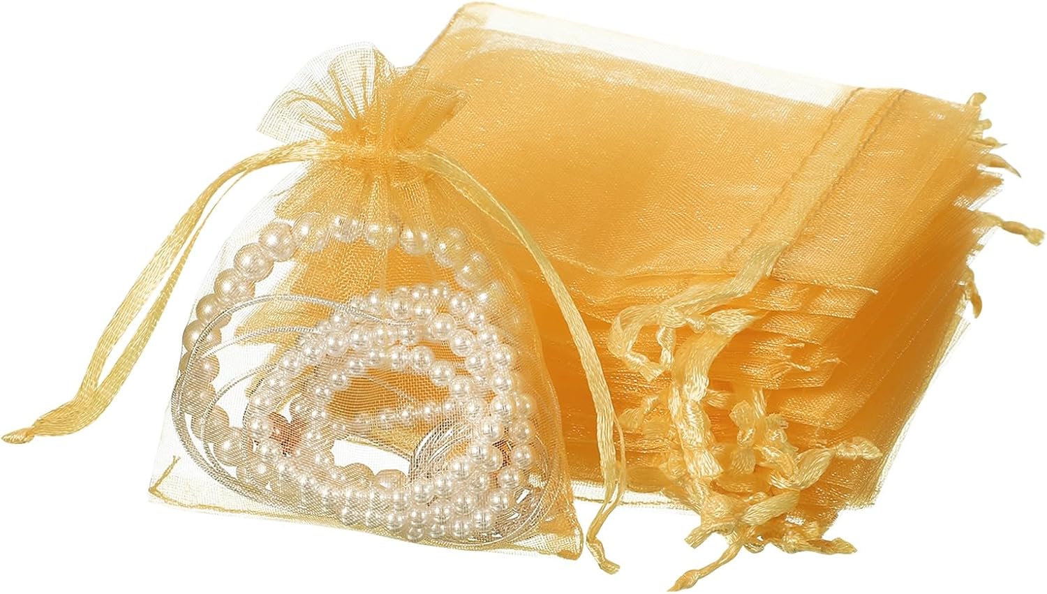 uxcell 50 Pcs Organza Gift Bags, 2.7x3.5 Inch Drawstring Pouches Jewelry Gift Bags, Small Wedding Favor Pouches for Christmas Birthday Wedding Goodie Candy Candle, Gold