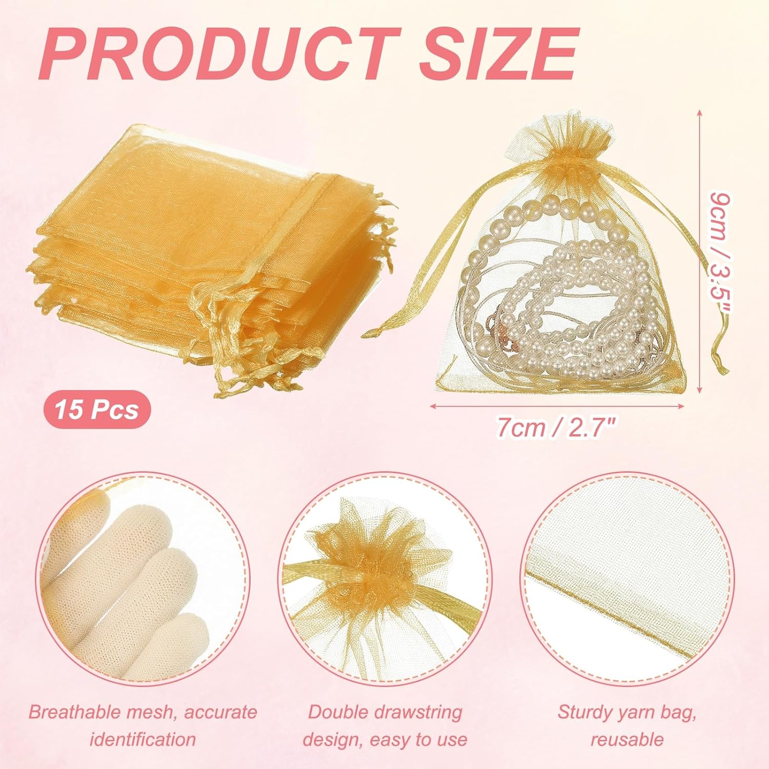 • Drawstring Design: The organza gift bags feature a practical drawstring closure for secure storage and easy access to items. The see-through mesh design ensures quick visibility to find contents, perfect for small objects like jewelry or snacks.
