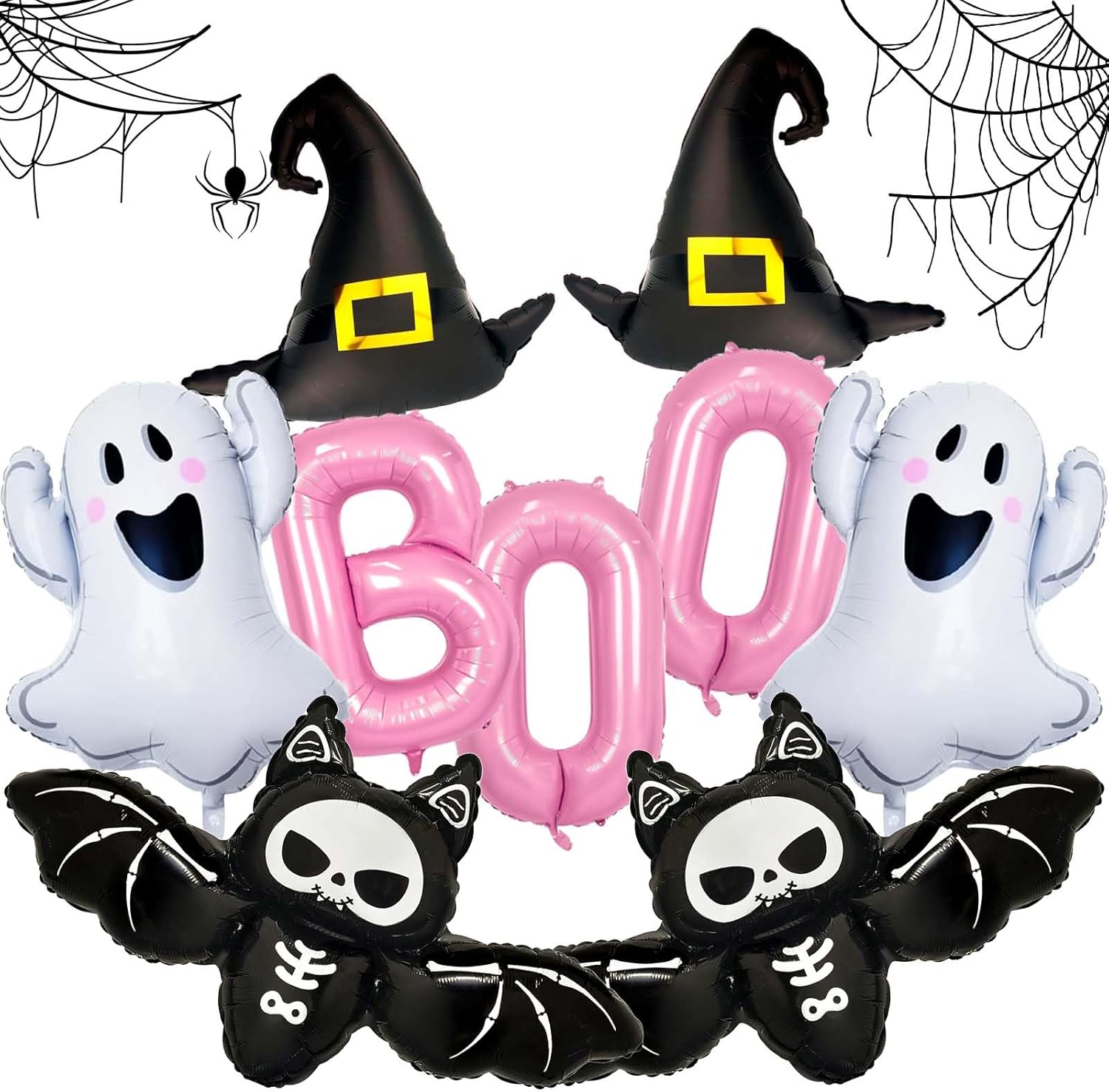 Halloween Balloons Decorations, Pink Boo Letter, Ghost, Bat, Wizard's Hat Foil Balloon for Halloween Party Decorations