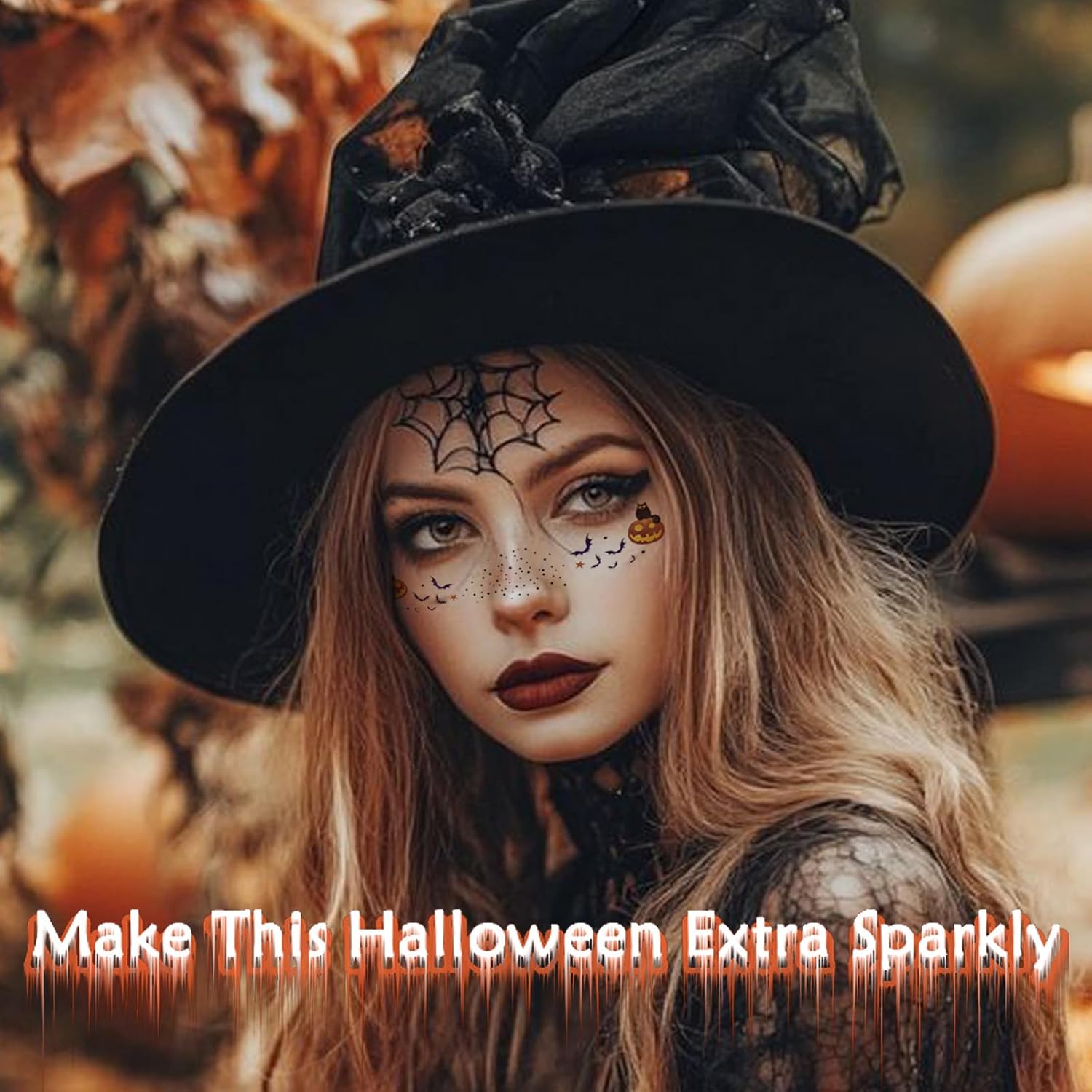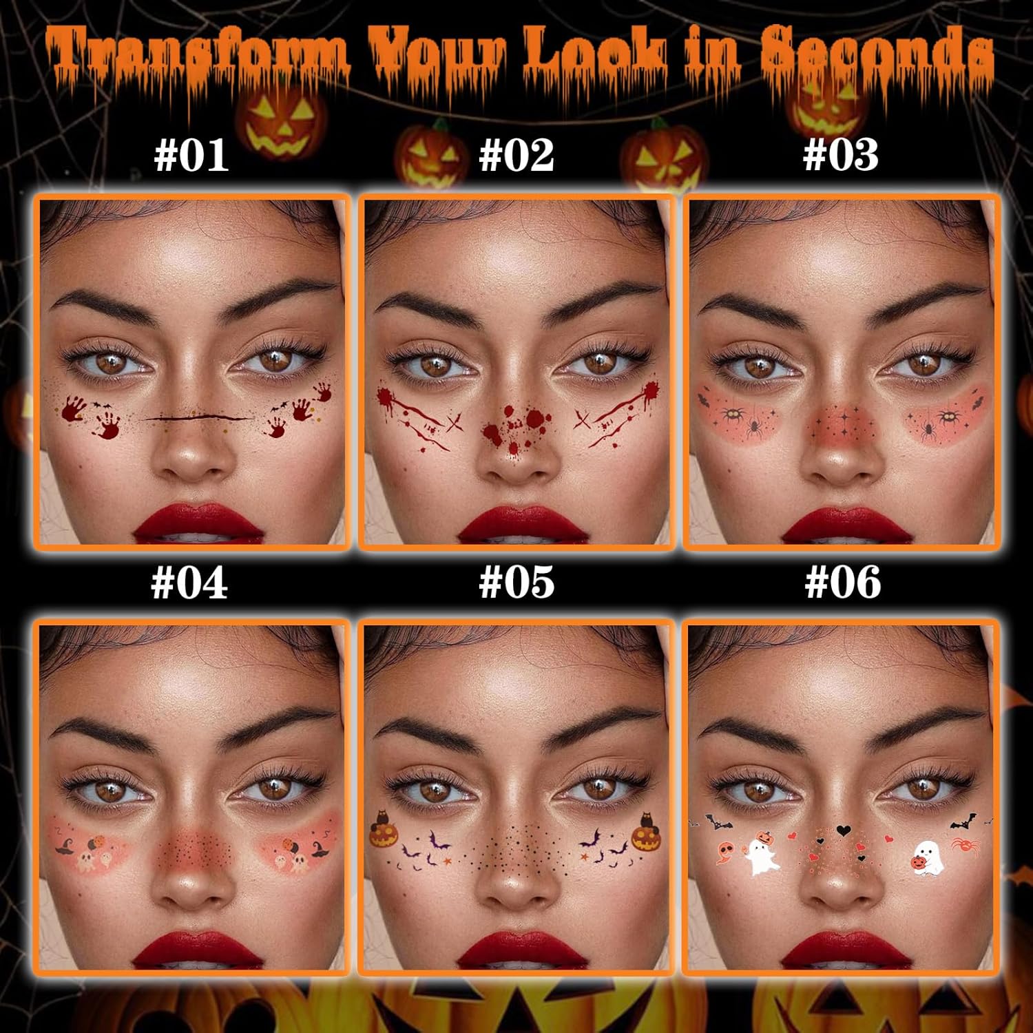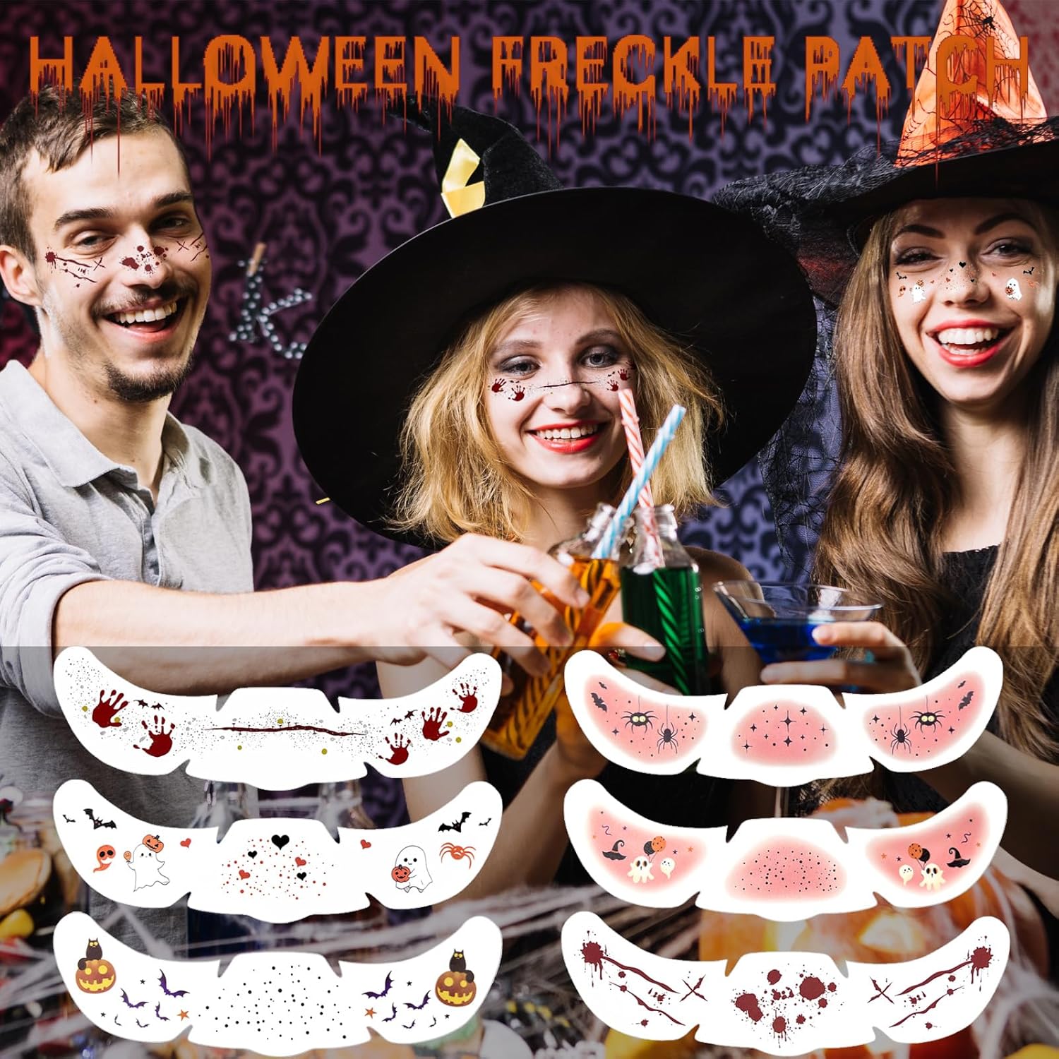 Glitter Freckles, 24PCS Glitter Freckles Face Tattoo, Sparkle Freckles for Women, Waterproof Gold Temporary Face Tattoos Glitter Glow Up Patches Makeup Patches (Halloween 6pcs)