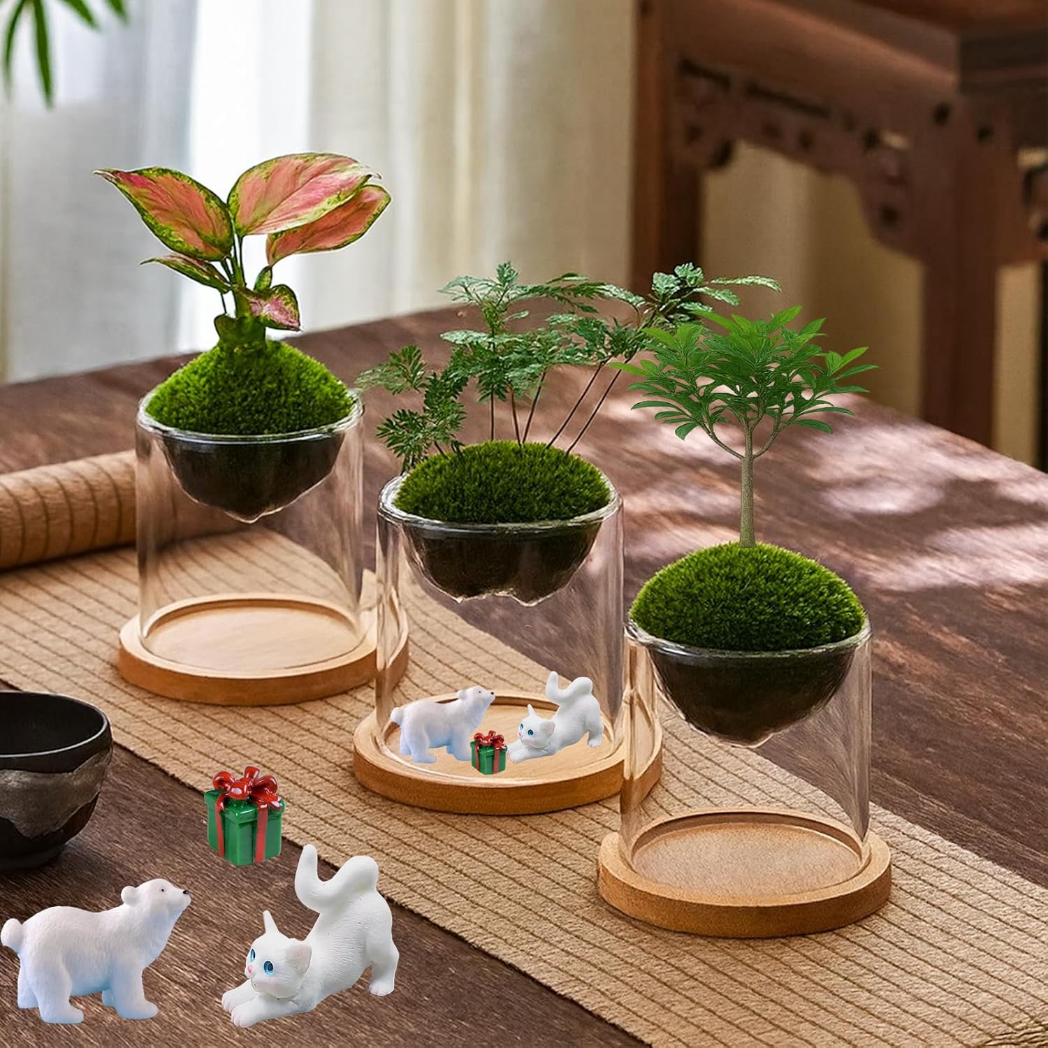 • COMPLETE KIT: Includes glass terrarium container, wooden base coaster, plant support system, and 3 lovely decorative accessories for creating your own miniature garden display or growing herbs and water plants (No plant included) ideal home apartment decor