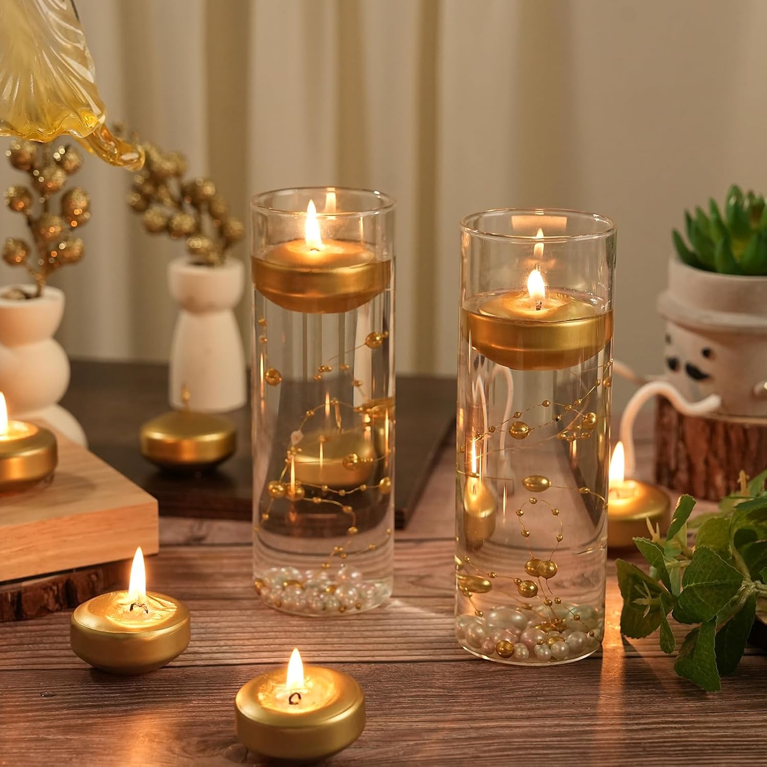 2 inch Gold Floating Candles, 48 Pack Unscented Floating Candles for Centerpieces,5-6 Hours Water Activated Candle Bulk for Cylinder Vases Wedding Pool