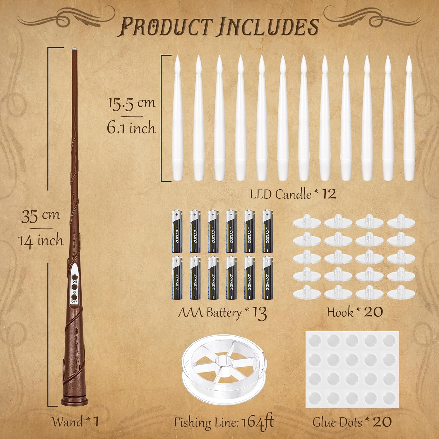 • Package List: 12* candles, 13* AAA lithium batteries, 12* fishing line, 12* glue dots, 1* magic wand, 1* user manual. We value each customer, and our after-sales team will provide each customer with satisfactory service and ensure you have the best experience possible. if you have any questions, please contact us, and we will answer you as soon as possible