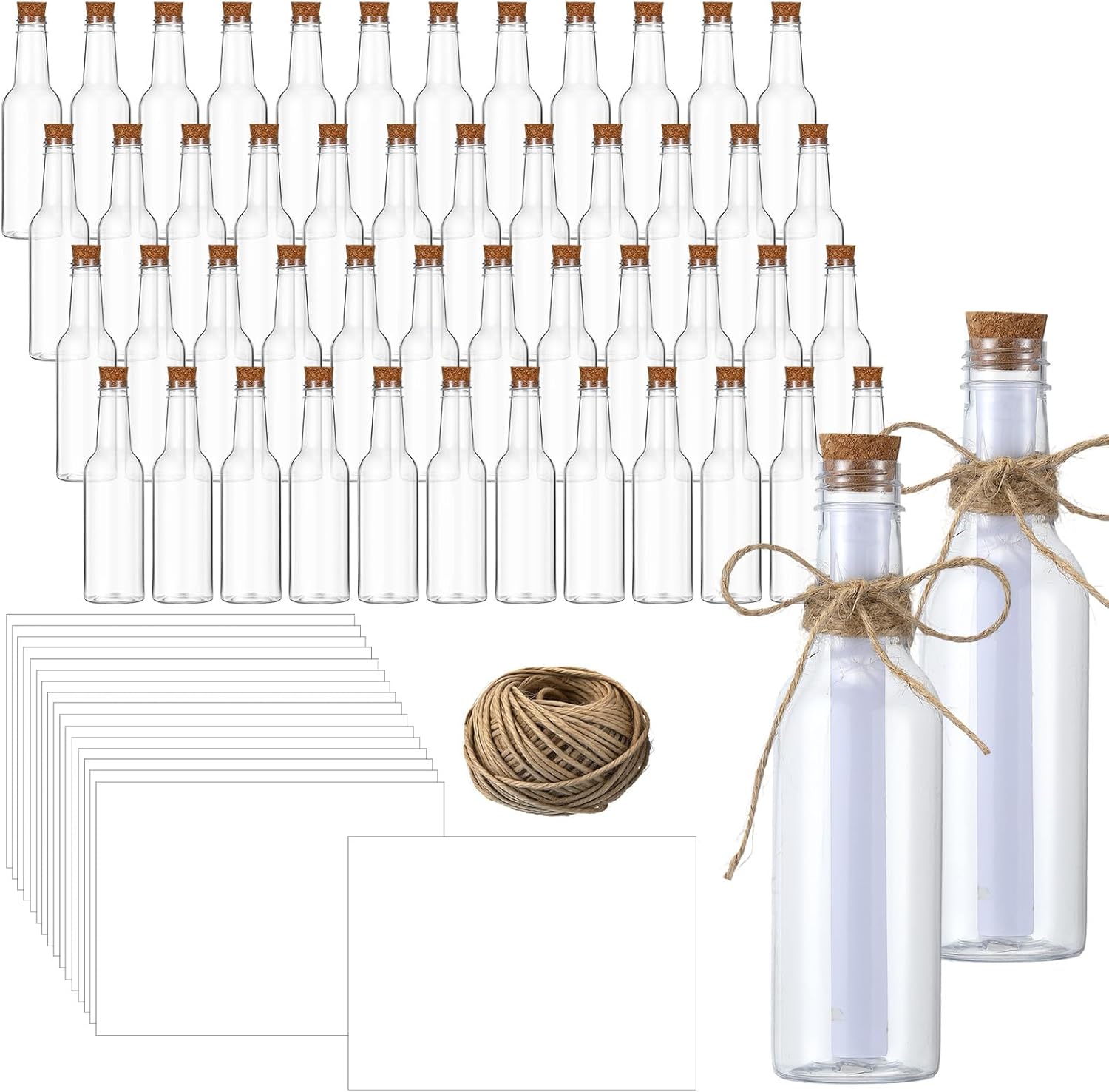 • Enough Package: the package includes 48 pieces of 5.6 oz message bottles with corks, comes with 60 sheets white printer paper and 1 roll of twine, which are sufficient to meet your various use