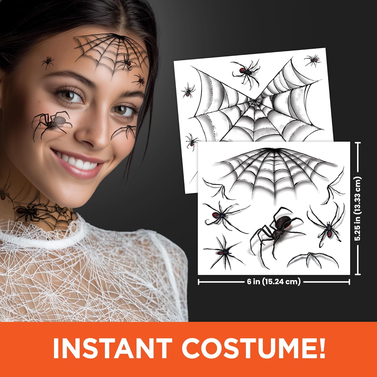 Assorted Spider Temporary Tattoos Variety Pack – Creepy Crawly Halloween Tattoos for Kids, 50+ Spooky Designs, Party Favors, Trick-or-Treat Handouts & Classroom Prizes