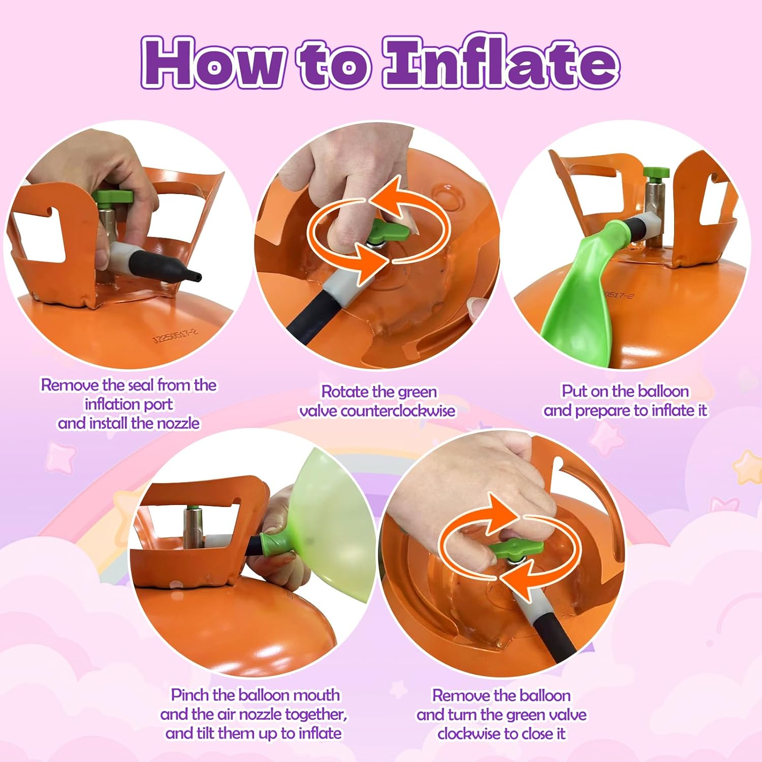 • Helium Tank:1 Tank,99.99% Pure Helium (Non-flammable, Non-toxic - Safe for Indoor Use),12.96cu.ft of helium per tank can fill 50 Standard 9-inch Latex Balloons** (Balloons provided are 12-inch size - inflate to 9" for best results).