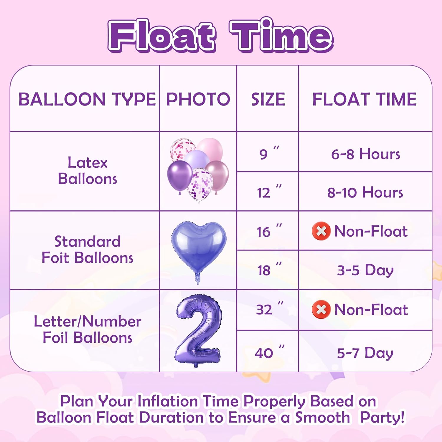 • Pink&Purple Latex Balloons Set: 50 Pieces,12-inch (Uninflated - Inflate to 9 inches),2.8g per balloon,6 metallic purple balloons, 6 metallic rose balloons, 13 maca pink balloons, 13 maca purple balloons, 6 rose confetti balloons, 6 purple confetti balloons.