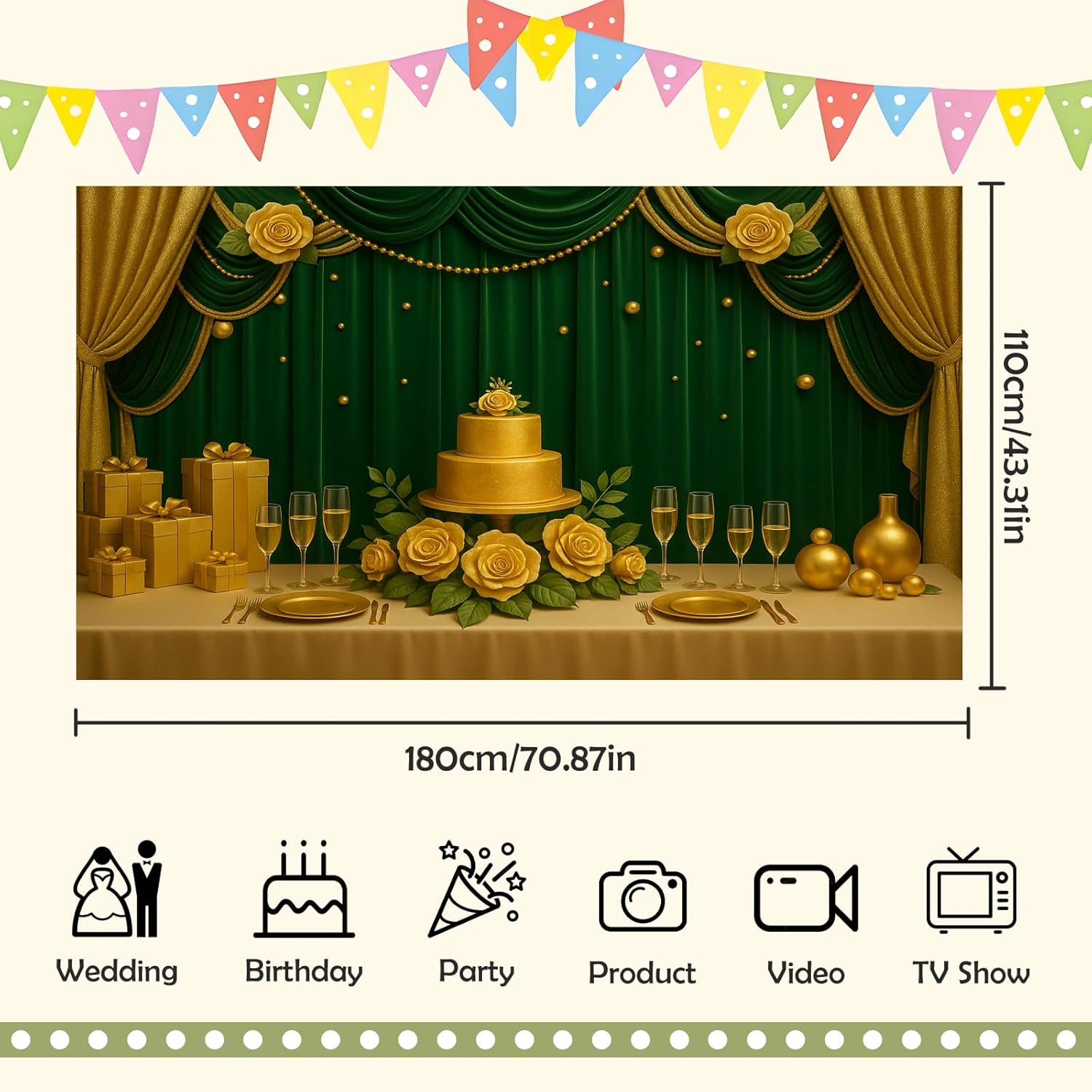 • Green Background: 1 piece, 70.87*43.3IN, Premium Vinyl Material, Profession photography cloth ,High-resolution digital print with eye-catching details and lifelike colors.Light absorbing and Non-reflective,clear clarity - the perfect photo prop! Warm Tips:The item will be sent in a folded manner, and slight creases may occur during transportation. Before use, the back can be easily wrinkle free by low-temperature ironing.